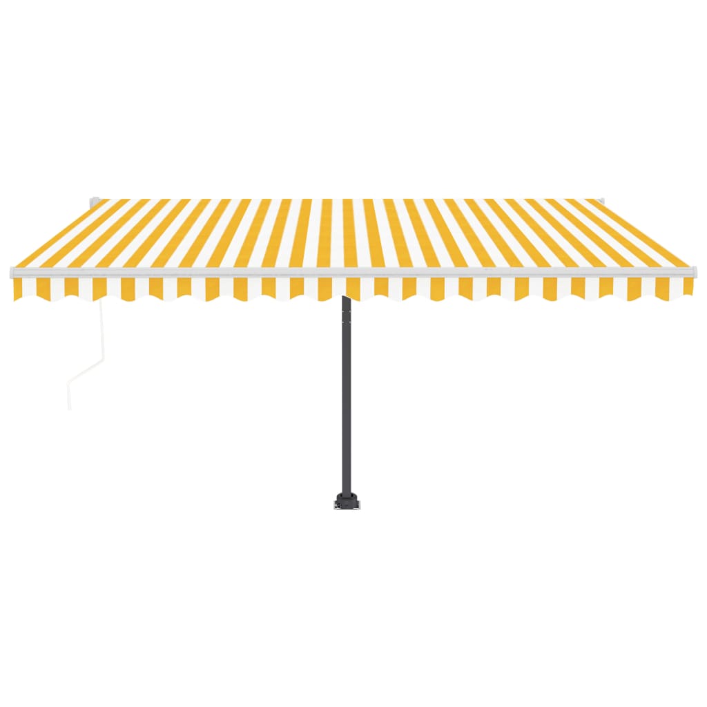 Schaffe einen angenehmen und kühlen Platz in deinem Außenbereich mit dieser einziehbaren Markise! Diese Outdoor-Markise ist mit einem rostfreien, pulverbeschichteten Alurahmen ausgestattet, der sie leicht und zugleich robust macht. Der Markisenstoff besteht aus hochdichtem Polyester mit PU-Beschichtung, das UV- und wasserbeständig ist. Zudem können Winkel und Höhe ganz nach Ihren Wünschen angepasst werden. Der robuste Standfuß ist um 360 Grad drehbar, um höchste Flexibilität zu bieten. Mit der mitgelieferten Fernbedienung lässt sich die automatisch einziehbare Markise einfach öffnen und einfahren. Auch mit der langen Handkurbel kann die Markise reibungslos geöffnet und geschlossen werden. Die Standmarkise ist auch mit einem Windsensor ausgestattet, der Ihre Markise an windigen Tagen automatisch schließt. Darüber hinaus sorgen die LED-Lampen am Abend für energiesparende Beleuchtung.