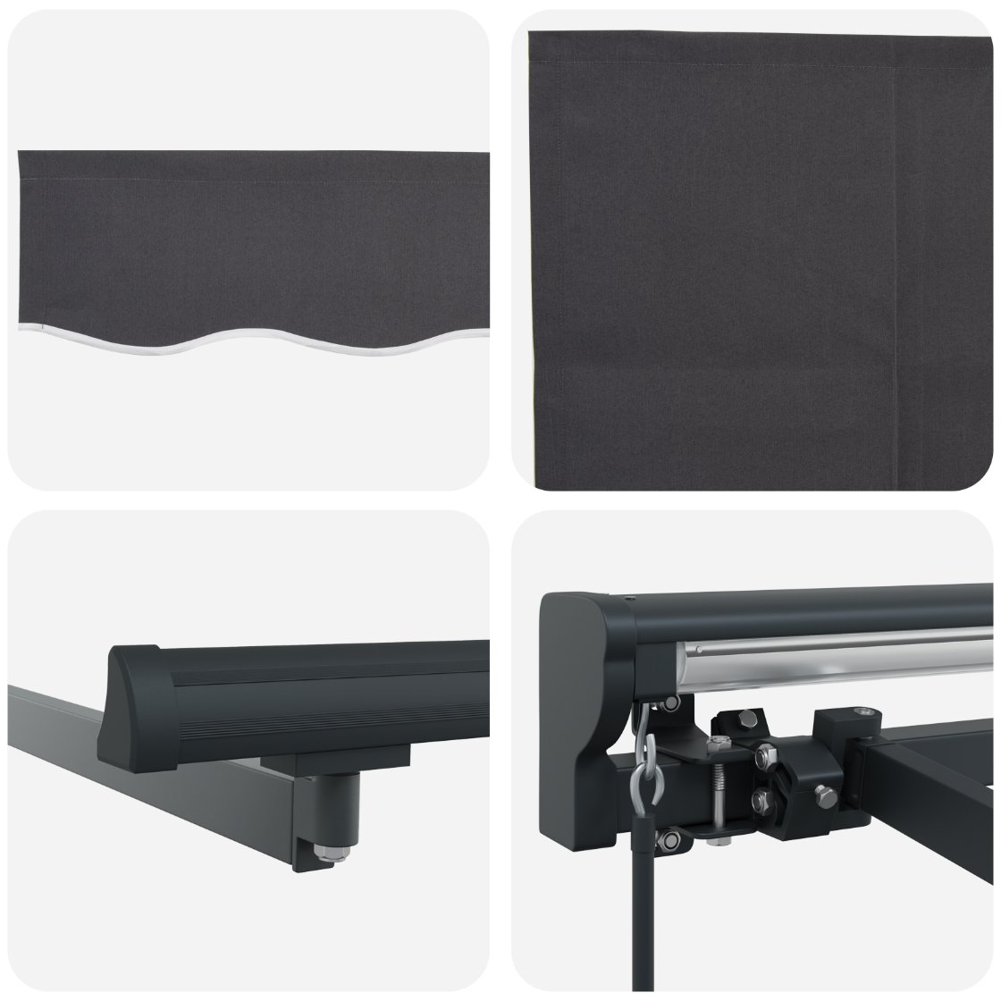Die einziehbare Terrassenmarkise ist die clevere Wahl für einen schattigen Platz im Freien, wenn du Wert auf Stil und Funktion legst. Sie hat ein modernes Design mit klaren Linien, das sich super in zeitgemäße Außenräume einfügt. Egal, ob du eine gemütliche Ecke im Garten oder einen schickeren Bereich auf der Terrasse schaffen willst, diese Markise bietet das Beste aus beiden Welten – eine coole Optik und praktische Nutzung, die zu verschiedenen Lebensstilen passt. Materialzusammensetzung: Die Markise besteht aus hochwertigem Stoff, Aluminium und pulverbeschichtetem Stahl und überzeugt durch ihre solide Bauweise. Der Stoff ist UV-beständig, sodass er viel Sonne abkann, ohne auszublassen. Der Rahmen aus Aluminium und pulverbeschichtetem Stahl sorgt für Stabilität und hält durch alle Jahreszeiten hindurch. Verstellmechanismus: Dank des manuellen Designs kannst du den Stoff ganz easy aus- oder einziehen. Es ist unkompliziert und ermöglicht es dir, zu entscheiden, wie viel Schatten du brauchst. Egal, ob du die Sonne abschirmen oder den klaren Himmel genießen möchtest, das geht ohne Probleme. UV- und Wasserbeständigkeit: Die Materialien sind für den Außeneinsatz gemacht. Der Hauptstoff der Markise bietet tollen UV-Schutz und ist außerdem wasserabweisend. Damit bleibt sie langlebig und hält sowohl Sonne als auch Regen gut aus. Egal ob Sonne oder Regen, dein Außenbereich bleibt einladend und gemütlich. Saisonale Anpassungsfähigkeit: Perfekt für den Sommer! Der farbechte Stoff sorgt dafür, dass die markante Farbe bei jedem Wetter bleibt. Ob über deinem Essbereich auf der Terrasse, einem Gartenplatz oder am Pool, sie fügt sich super in unterschiedlichste Umgebungen ein. Einfaches Wartung: Die Pflege der Markise ist dank ihres coolen Designs ganz simpel. Wisch einfach gelegentlich mit einem feuchten Tuch über den Stoff. Es ist auch eine gute Idee, sie bei extremen Wetterbedingungen einzuziehen, um die Lebensdauer zu verlängern. Mit diesen einfachen Schritten bleibt sie ein zuverlässiger Schattengeber für deine Außenbereiche.