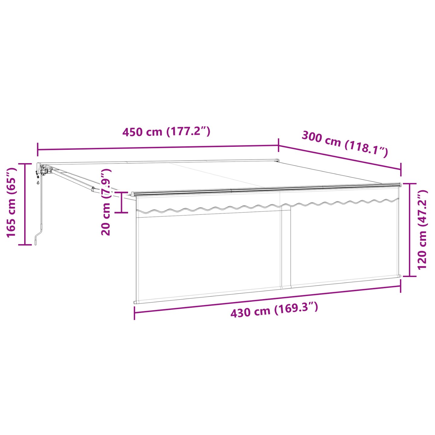 Schau dir diese top motorisierte Markise für die Terrasse an, die dein Outdoor-Erlebnis aufpeppt. Sie ist so designt, dass Funktionalität und Stil perfekt zusammenkommen und macht deinen Balkon oder deine Terrasse zum absoluten Hingucker. Das schicke, einziehbare Design lässt dich Sonne oder Schatten genießen, wann immer du willst. Die glatte Oberfläche verleiht deinem Außenbereich einen modernen Touch, der alles gleich aufwertet. Mit ihrem großzügigen Platzangebot ist sie perfekt für verschiedene Outdoor-Events und verwandelt Räume in gemütliche Rückzugsorte. Glattes Gewebe: Hergestellt aus hochwertigem Polyester, sorgt das Material für eine schöne glatte Oberfläche, die deinem Außenbereich eleganten Chic verleiht und gleichzeitig vor Sonne und Regen schützt. Es ist langlebig und sieht auch bei schlechtem Wetter super aus. Genieße die lange Haltbarkeit dieser Markise, die perfekt für Spaß im Freien ist. Durchdachte Komponenten: Im Paket sind ein stabiler Markisenrahmen, robuster Ersatzstoff und ein zusätzlicher Sichtschutz enthalten, alles darauf ausgelegt, dein Outdoor-Erlebnis zu verbessern. Jedes Teil wurde für Stabilität und lange Lebensdauer gewählt, damit du immer mit gutem Gewissen nutzen kannst. Perfekte Funktionalität: Mit tollen Eigenschaften hat diese Markise UV-beständige und wasserabweisende Eigenschaften. Das motorisierte, einziehbare Design macht es super easy, die Markise zu verstellen, sodass du deinen Schatten nach Belieben anpassen kannst. Vielfältige Anwendungen: Die Markise eignet sich ideal für Balkone, Terrassen und andere Außenbereiche und bietet tollen Schatten und Komfort. Ihr modernes Design passt zu vielen Stilen und ist perfekt für unterschiedliche Outdoor-Nutzung. Einfache Pflege: Halte sie in gutem Zustand, indem du sie mit kaltem Wasser wäschst und scharfe Reinigungsmittel vermeidest, damit sie auf lange Sicht gut aussieht und funktioniert.