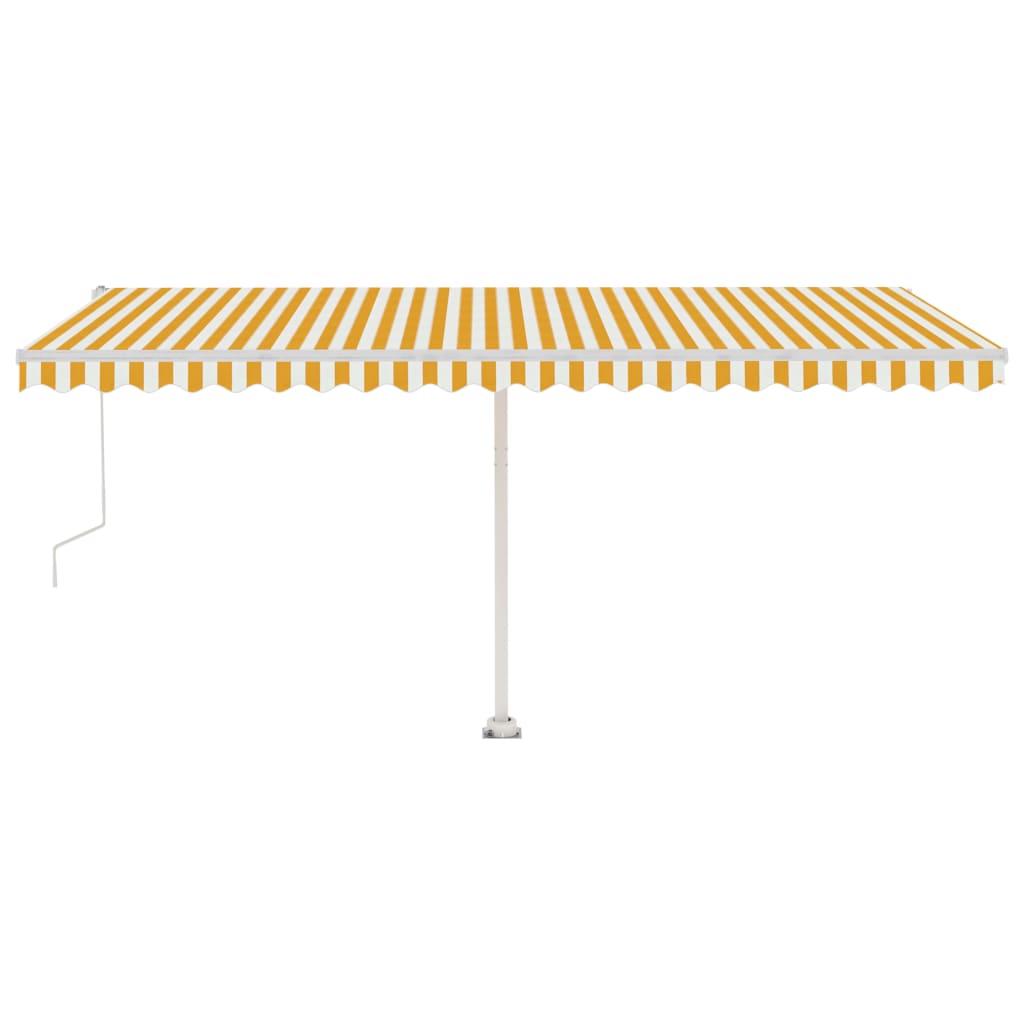 Schaffe einen angenehmen und kühlen Platz in deinem Außenbereich mit dieser einziehbaren Markise! Diese Outdoor-Markise ist mit einem rostfreien, pulverbeschichteten Alurahmen ausgestattet, der sie leicht und zugleich robust macht. Der Markisenstoff besteht aus hochdichtem Polyester mit PU-Beschichtung, das UV- und wasserbeständig ist. Zudem können Winkel und Höhe ganz nach Ihren Wünschen angepasst werden. Der robuste Standfuß ist um 360 Grad drehbar, um höchste Flexibilität zu bieten. Mit der mitgelieferten Fernbedienung lässt sich die automatisch einziehbare Markise einfach öffnen und einfahren. Auch mit der langen Handkurbel kann die Markise reibungslos geöffnet und geschlossen werden. Die Standmarkise ist auch mit einem Windsensor ausgestattet, der Ihre Markise an windigen Tagen automatisch schließt. Darüber hinaus sorgen die LED-Lampen am Abend für energiesparende Beleuchtung.