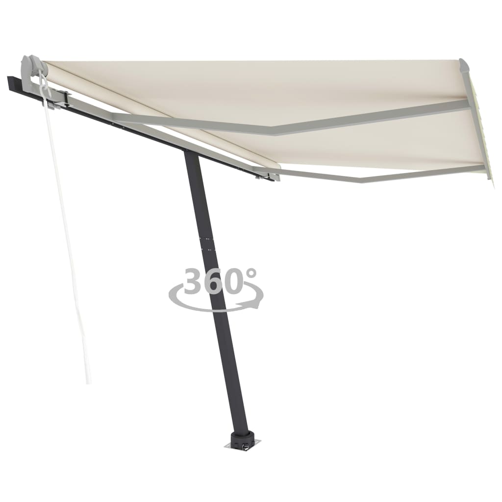 Schaffe einen angenehmen und kühlen Platz in deinem Außenbereich mit dieser einziehbaren Markise! Diese Outdoor-Markise ist mit einem rostfreien, pulverbeschichteten Aluminiumrahmen ausgestattet, der sie leicht und dennoch robust macht. Der Markisenstoff besteht aus Polyester hoher Dichte mit PU-Beschichtung, das UV-beständig und wasserfest ist. Zudem lassen sich Winkel und Höhe an deine Bedürfnisse anpassen. Mit der mitgelieferten Fernbedienung kannst du die automatische Markise einfach aus- und einfahren. Die Markise kann auch mit der langen Handkurbel einfach geöffnet und geschlossen werden. Der robuste Standfuß ist um 360 Grad drehbar, um höchste Flexibilität zu bieten.