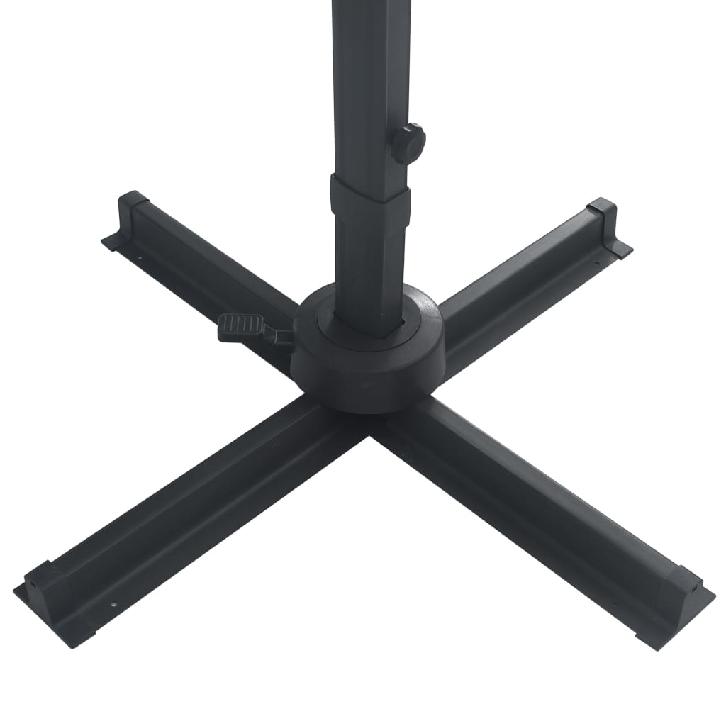 Dieser elegante Sonnenschirm schafft nicht nur ein schattiges Plätzchen in deinem Garten, sondern bietet auch Schutz gegen schädliche UV-Sonnenstrahlen. Die Bespannung besteht aus UV-beständigem und lichtechtem Polyester und bietet daher optimalen Schutz vor der Sonne und ist leicht zu reinigen. Der Sonnenschirm verfügt über 24 solarbetriebene LEDs, die deinen Außenbereich automatisch beleuchten und ein gemütliches und romantisches Ambiente schaffen, wenn die Sonne untergeht. Ein stabiler Kreuzfuß sorgt für zusätzliche Stabilität. Unser Gartenschirm lässt sich durch einfaches Drehen des Knopfes am Mast leicht öffnen und schließen. Die Neigung des Schirms lässt sich durch Drücken und Ziehen des Griffs nach oben und unten verstellen. Der Mast kann außerdem mit dem Pedal um 360 Grad gedreht werden. Der starke, pulverbeschichtete Aluminium-Mast und die 8 robusten Rippen machen diesen Sonnenschirm sehr stabil und langlebig. Der Artikel ist leicht zu montieren. Bitte beachten: Wir empfehlen, die Schirmbespannung mit einem Imprägnierspray zu behandeln, wenn es starken Regenfällen ausgesetzt ist. Hinweis: Das Produkt verfügt über einen USB-Anschluss, aber die zertifizierte 5-V-USB-Stromquelle ist nicht im Lieferumfang enthalten.