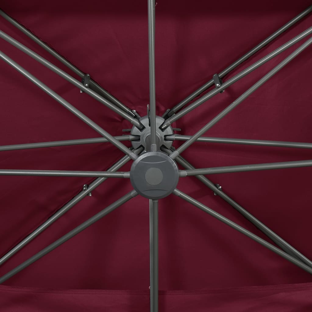 Dieser Sonnenschirm spendet Schatten und bietet auch Schutz gegen schädliche UV-Strahlen. Aus UV-beständigem und farbechtem Polyester gefertigt, bietet dieser pflegeleichte Sonnenschirm optimalen Schutz vor schädlichen Sonnenstrahlen. Er verfügt über einen stabilen Kreuzständer, der für erhöhte Stabilität sorgt. Das exklusive Design dieses Gartenschirms ermöglicht es, ihn um 360 Grad zu neigen und zu drehen, um den Sonnenschutz immer in der gewünschten Position einzustellen. Der starke Alumast macht den Sonnenschirm zusammen mit den 8 Speichen sehr stabil und langlebig. Zudem lässt sich der Gartenschirm dank des Kurbelmechanismus leicht öffnen und schließen. Darüber hinaus unterstützt das Doppeldach-Design die Lüftung des Ampelschirms. Bitte beachten: Wir empfehlen, die Schirmbespannung mit einem Imprägnierspray zu behandeln, wenn es starken Regenfällen ausgesetzt ist.