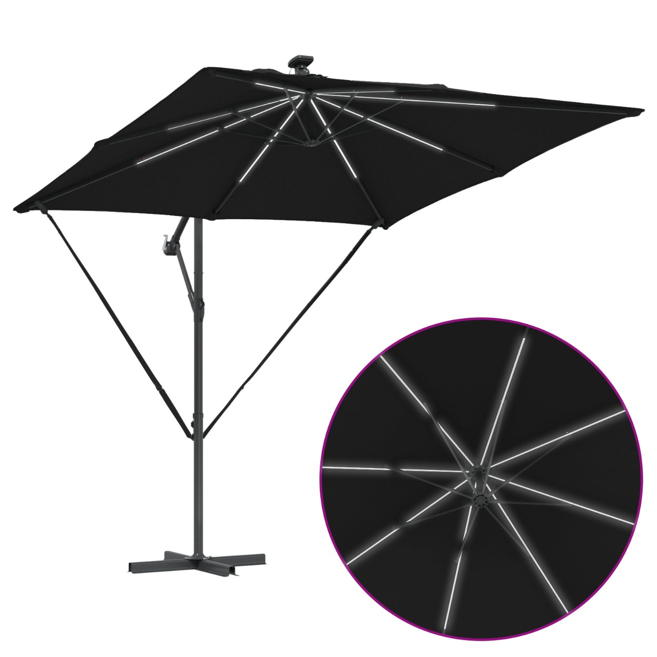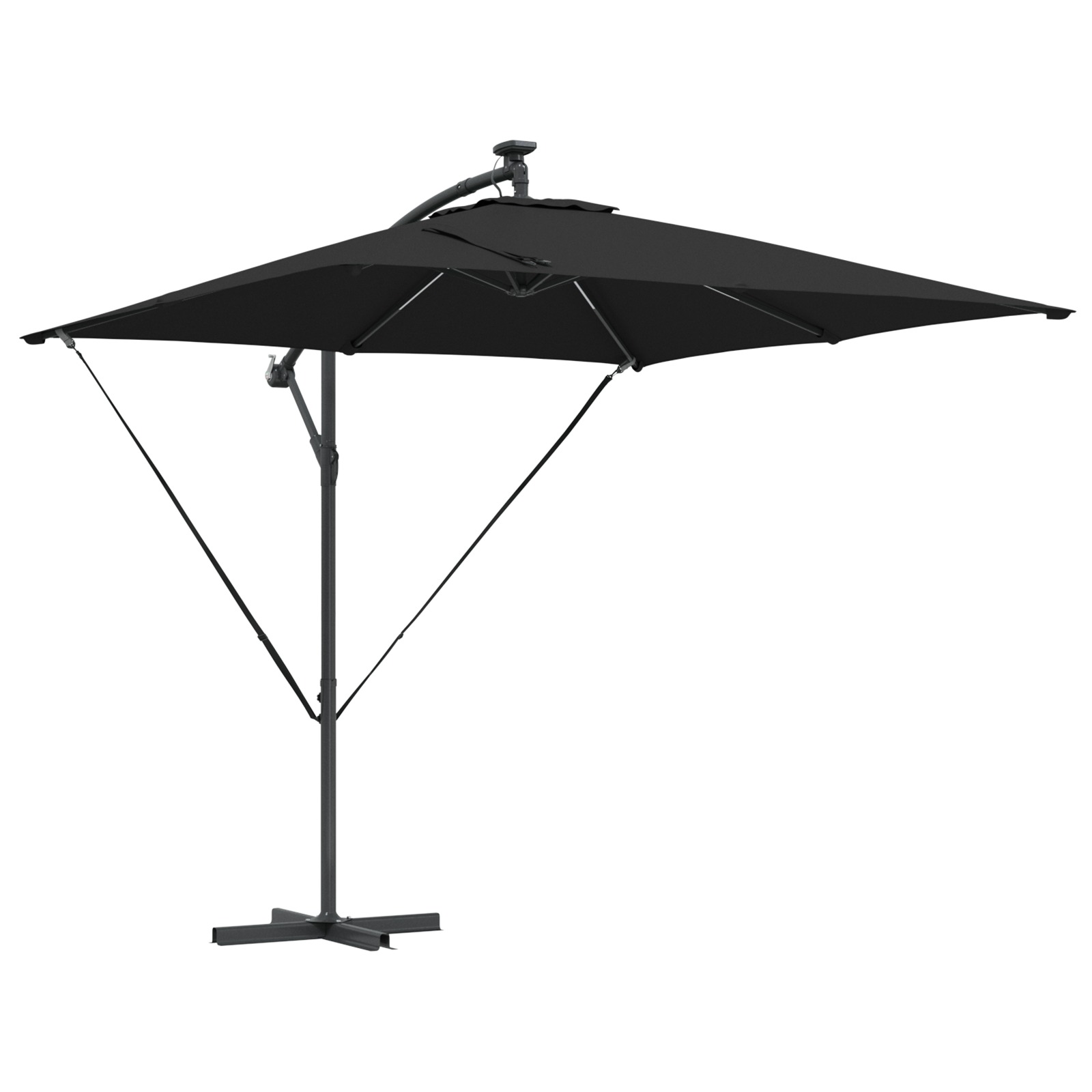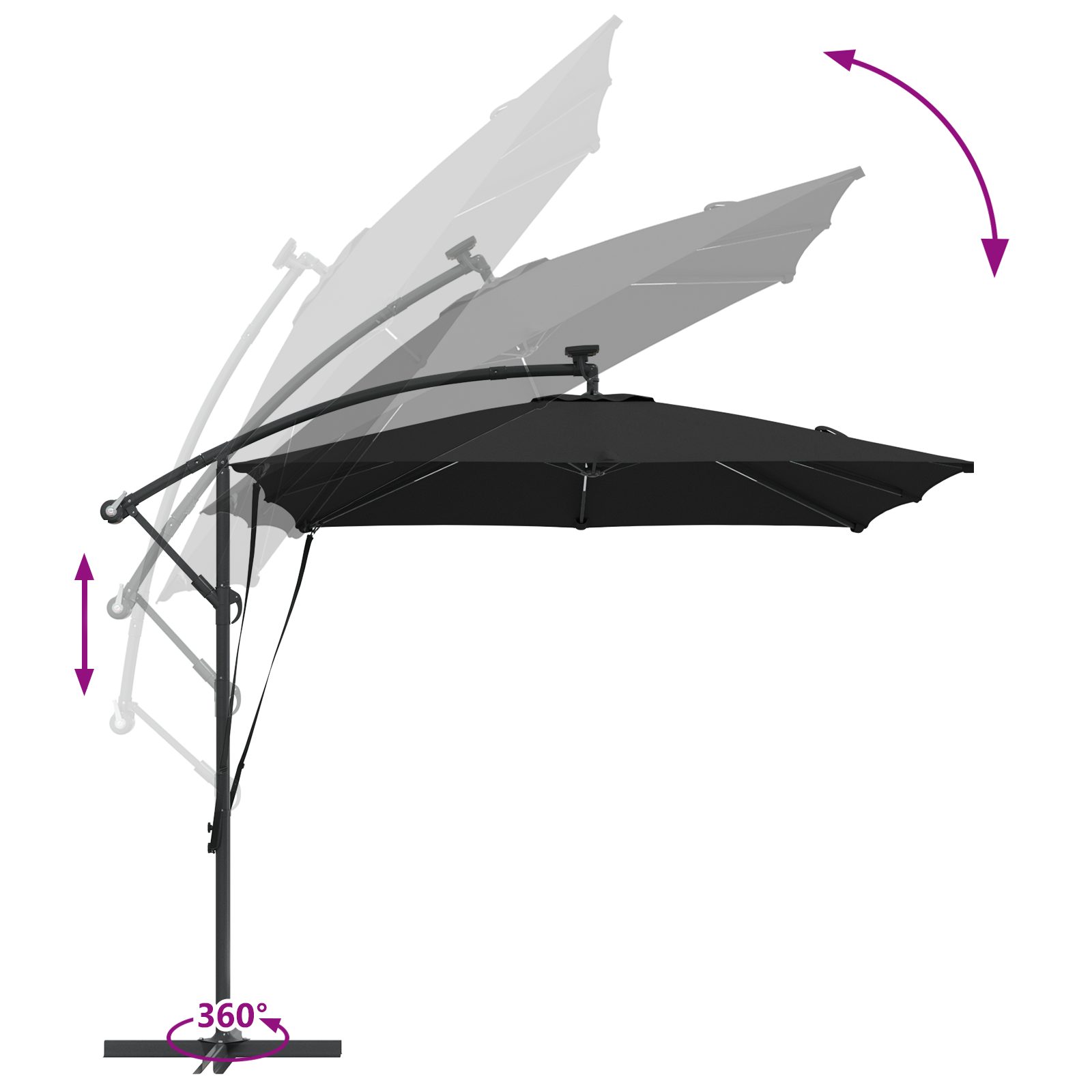 Dieser Outdoor Cantilever Sonnenschirm ist eine flexible Möglichkeit, Schatten für jeden modernen Außenbereich zu schaffen – egal ob Balkon, Garten oder Terrasse. Mit seinem schicken Design bietet er hervorragenden Sonnenschutz und bringt praktische Elemente sowie Stil in deine Sommer-Lounge. Das freischwingende Design erlaubt es dir, ihn nach Belieben zu positionieren, und sein stylisches Aussehen passt perfekt zu städtischen Umgebungen und sorgt für eine einladende Atmosphäre zum Entspannen oder Feiern mit Freunden. Material: Hergestellt aus robustem pulverbeschichtetem Stahl, ist der Sonnenschirm sowohl UV- als auch windfest. Das Polyesterdach hält den Elementen stand und schützt dich vor der Sonne, dabei sieht es auch noch schick aus. Coole Features: Mit solarbetriebenen LED-Leuchten für eine angenehme Abendstimmung und einem Handgriff zum schnellen Öffnen und Schließen, plus einer Kippfunktion, mit der du das Dach besser anpassen kannst. Er wurde für Komfort und Praktikabilität entwickelt und ist die perfekte Wahl für die Entspannung im Freien. Genialer Aufbau: Das windfeste Design sorgt dafür, dass er an windigen Tagen stabil bleibt, und die neigbare Struktur ermöglicht es dir, den Schatten ganz nach Wunsch zu justieren. Diese Flexibilität sorgt dafür, dass du immer draußen entspannen kannst – egal wo die Sonne steht, und maximiert den Einsatz von morgens bis abends. Vielseitig einsetzbar: Perfekt für jeden Außenbereich – ob Garten, Balkon oder Terrasse – bietet dieser Sonnenschirm vielseitigen Schatten. Ideal zum Chillen mit einem Buch, für eine Gartenparty oder für ein Essen unter den Sternen. Einfach zu pflegen: Für eine ansprechende Optik sprühe regelmäßig ein wasserdichtes Spray auf und benutze eine Abdeckung, wenn du ihn nicht nutzt. Regelmäßige Pflege hilft, ihn gut in Schuss zu halten und macht ihn zu einem langlebigen Element in deinem Außenbereich.