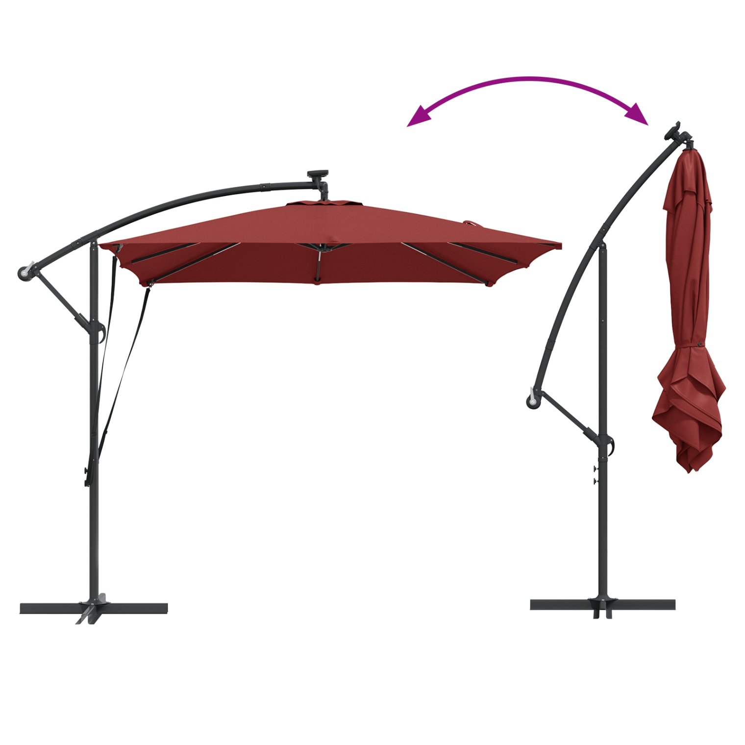 Dieser Outdoor Cantilever Sonnenschirm ist eine flexible Möglichkeit, Schatten für jeden modernen Außenbereich zu schaffen – egal ob Balkon, Garten oder Terrasse. Mit seinem schicken Design bietet er hervorragenden Sonnenschutz und bringt praktische Elemente sowie Stil in deine Sommer-Lounge. Das freischwingende Design erlaubt es dir, ihn nach Belieben zu positionieren, und sein stylisches Aussehen passt perfekt zu städtischen Umgebungen und sorgt für eine einladende Atmosphäre zum Entspannen oder Feiern mit Freunden. Material: Hergestellt aus robustem pulverbeschichtetem Stahl, ist der Sonnenschirm sowohl UV- als auch windfest. Das Polyesterdach hält den Elementen stand und schützt dich vor der Sonne, dabei sieht es auch noch schick aus. Coole Features: Mit solarbetriebenen LED-Leuchten für eine angenehme Abendstimmung und einem Handgriff zum schnellen Öffnen und Schließen, plus einer Kippfunktion, mit der du das Dach besser anpassen kannst. Er wurde für Komfort und Praktikabilität entwickelt und ist die perfekte Wahl für die Entspannung im Freien. Genialer Aufbau: Das windfeste Design sorgt dafür, dass er an windigen Tagen stabil bleibt, und die neigbare Struktur ermöglicht es dir, den Schatten ganz nach Wunsch zu justieren. Diese Flexibilität sorgt dafür, dass du immer draußen entspannen kannst – egal wo die Sonne steht, und maximiert den Einsatz von morgens bis abends. Vielseitig einsetzbar: Perfekt für jeden Außenbereich – ob Garten, Balkon oder Terrasse – bietet dieser Sonnenschirm vielseitigen Schatten. Ideal zum Chillen mit einem Buch, für eine Gartenparty oder für ein Essen unter den Sternen. Einfach zu pflegen: Für eine ansprechende Optik sprühe regelmäßig ein wasserdichtes Spray auf und benutze eine Abdeckung, wenn du ihn nicht nutzt. Regelmäßige Pflege hilft, ihn gut in Schuss zu halten und macht ihn zu einem langlebigen Element in deinem Außenbereich.
