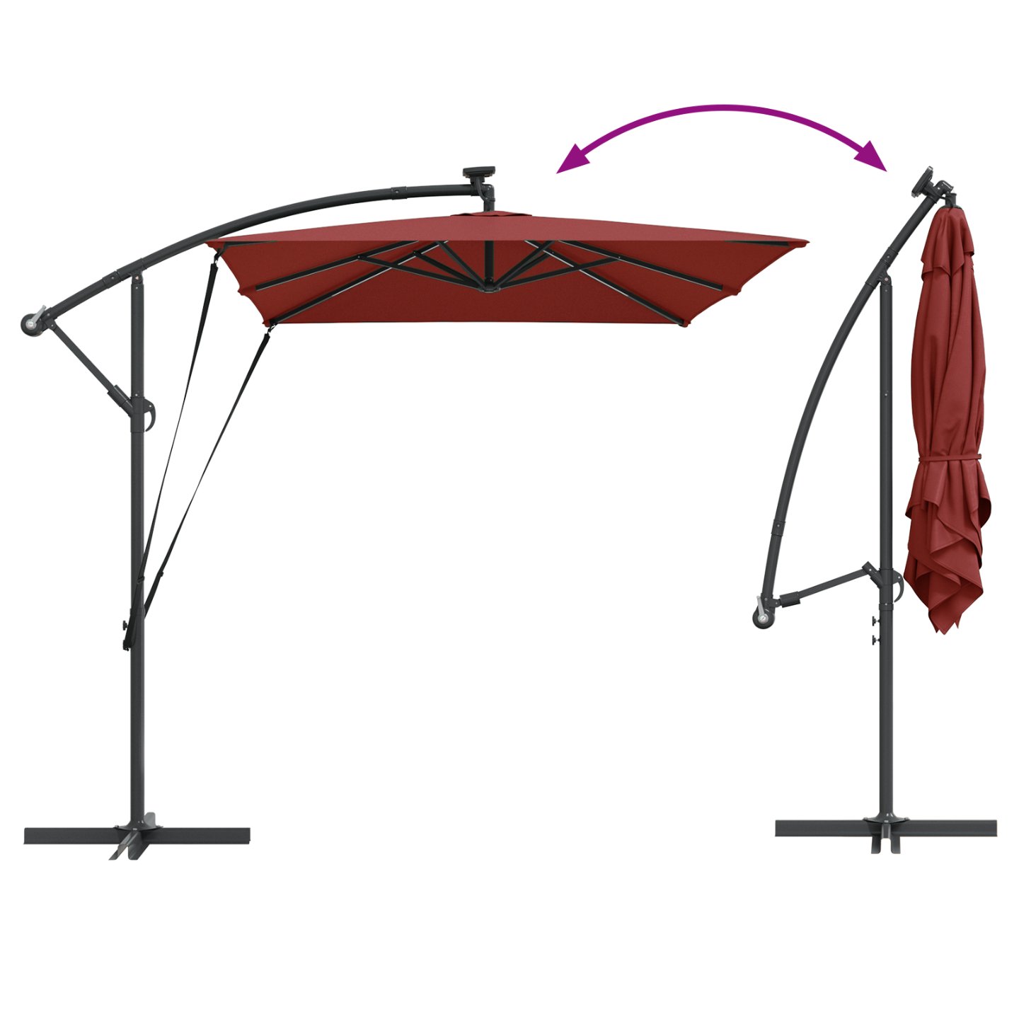 Der freischwingende Sonnenschirm vereint stylische Praktikabilität und ist perfekt, um deinen Garten, Balkon oder deine Terrasse aufzupimpen. Mit seinem modernen, schlichten Design passt er überall rein. Sein eleganter Look und die glatte Oberfläche machen ihn nicht nur schön, sondern bieten auch verlässlichen Schatten – ideal zum Chillen oder für Partys mit Freunden. Materialien: Aus pulverbeschichtetem Stahl, stabil und rostfrei. Das Polyester-Dach bietet tollen UV-Schutz und bleibt bei jedem Wetter fresh. Er ist für lange Lebensdauer und gute Leistung gemacht. Enthaltene Komponenten: Mit solarbetriebenen LED-Lichtern, die nachts für schönes Licht sorgen, ohne Stromkosten. Die praktische Handkurbel macht das Öffnen und Schließen super einfach, und die kippbare Funktion lässt sich problemlos anpassen. Features / Funktion / Design: Winddicht, also keine Sorge bei windigem Wetter. Der Luftschlitz sorgt dafür, dass die Luft zirkuliert und das Dach nicht umgedreht wird. Mit den solarbetriebenen Lichtern schaffst du eine tolle Atmosphäre, perfekt zum Abhängen oder Essen am Abend. Empfohlene Anwendungen: Ideal für Gärten, Balkone und Terrassen. Eine tolle Lösung für jeden Außenanlass. Ob Tag oder Nacht, der Schirm ist super für alles – vom entspannten Chillen bis zu lebhaften Partys. Pflege & Wartung: Um deinen Schirm schön zu halten, vermeide scharfe Reiniger und verwende eine Abdeckung, wenn er nicht gebraucht wird. Ein bisschen wasserabweisendes Spray ab und zu hilft, ihn gegen Feuchtigkeit zu schützen.