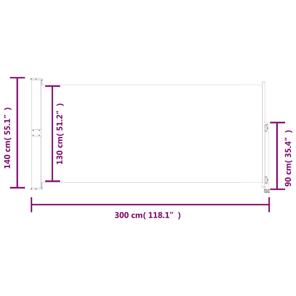 Diese schlichte und zugleich stilvolle Seitenmarkise schafft eine gemütliche kleine Ecke und bietet die Privatsphäre, die Sie auf Ihrer Terrasse oder auf Ihrem Balkon benötigen. Sie wird auch vor Wind und starken Sonnenstrahlen schützen. Der Sichtschutz besteht aus UV- und reißfestem Polyester. Die Kassette wird in vertikaler Position auf einem stabilen Eisensockel montiert, so dass die ausziehbare Markise leicht herausgezogen werden kann. Die Markise verfügt außerdem über eine automatische Rückrollfunktion. Dieser Balkon-Sichtschutz ist einfach zu montieren. Montage-Zubehör im Lieferumfang enthalten.