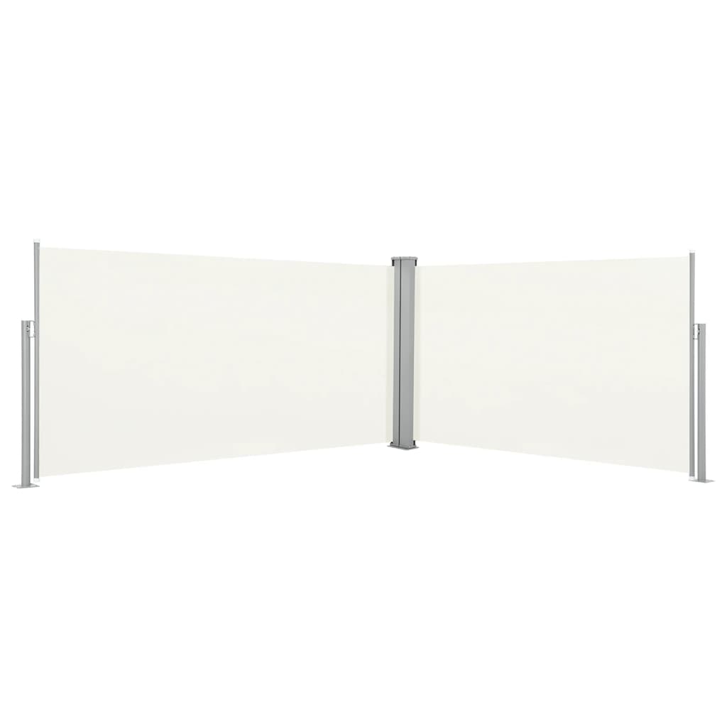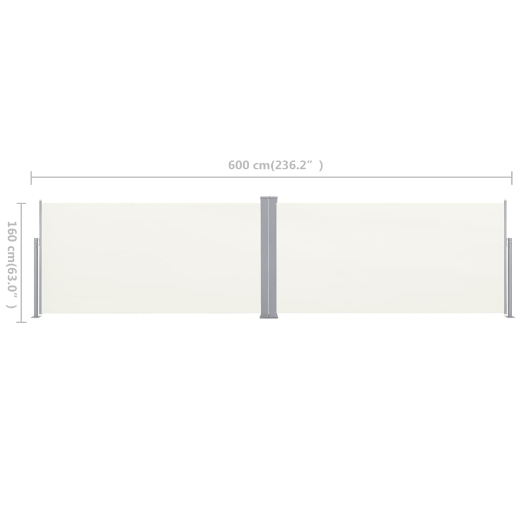 Diese Seitenmarkise bietet beidseitigen Sichtschutz und effektiven Schutz gegen konstanten Wind und tiefstehende Sonne, und gewährleistet zudem Privatsphäre. Stilvoll und einfach, ist sie eine gute Wahl für private Zwecke aber auch für Restaurants.Der Garten-Sichtschutz besteht aus UV-beständigem und reißfestem Polyester und hat eine Doppelkassette mit einer großen, stabilen Basis. Die ausziehbare Markise kann von beiden Seiten der Kassette an den Griffen herausgezogen werden. Die Breite der Markise lässt sich bis auf 600 cm einstellen. Die Markise fährt automatisch ein. Sie wird eine große Bereicherung für Ihre Terrasse, Ihren Patio oder Balkon sein. 2 Pfosten und 12 Schrauben sind ebenfalls im Lieferumfang enthalten.