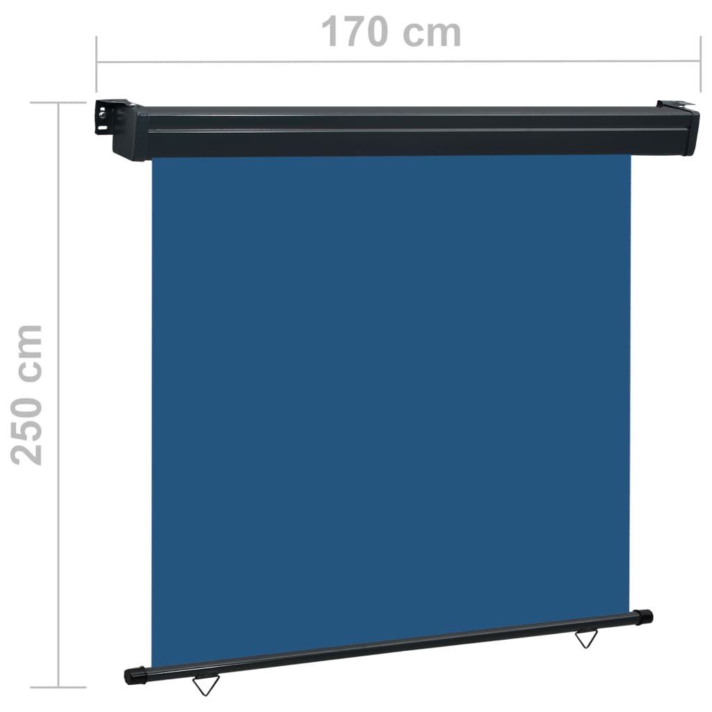 Diese schlichte, aber stilvolle Seitenmarkise bietet Privatsphäre und schafft einen gemütlichen Ort. Diese Markise ist sowohl ein Windschutz als auch ein Sonnenschutz. Die Blende ist aus UV-beständigem, reißfestem Polyester hergestellt. Die Aluminiumwalze sorgt für ein reibungsloses Abrollen. Sie verfügt über eine Selbstsperrfunktion, so dass sie an jeder Stelle angehalten werden kann. Die Markise kann auf bis zu 250 cm Länge ausgerollt werden. Zudem kann sie durch einfaches Ziehen der unteren Dreiecksringe automatisch wieder in die Stahleinfassung eingefahren werden. Je nach Bedarf kann die Senkrechtmarkise sowohl an der Wand als auch an der Decke befestigt werden. Die Lieferung umfasst auch Montagezubehör.