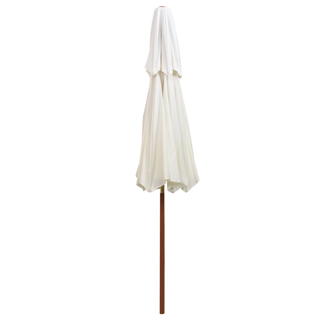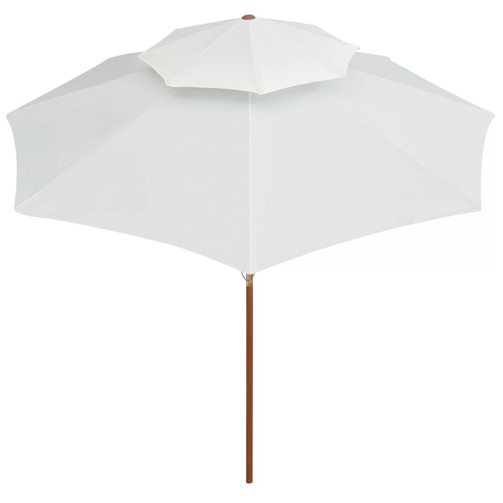 Dieser elegante Sonnenschirm aus Holz, der auf einem Schirmständer oder in das Loch in der Mitte eines Tisches befestigt werden kann, ist die perfekte Wahl, um Schatten zu spenden und dich vor schädlichen UV-Strahlen zu schützen, während du dich mit deiner Familie oder deinen Freunden entspannst. Der Gartenschirm lässt sich leicht öffnen und schließen. Der Sonnenschirmbezug ist aus UV-beständigem und farbechtem Polyester gefertigt. Der robuste Hartholzmast in einer schönen Teakholz-Farbe trägt zusammen mit den 8 robusten Schirmrippen zur Stabilität bei und macht den Sonnenschirm sehr langlebig für jahrelangen Gebrauch im Außenbereich. Der Schirmbezug mit Lüftung ermöglicht die Luftzirkulation an heißen Tagen.