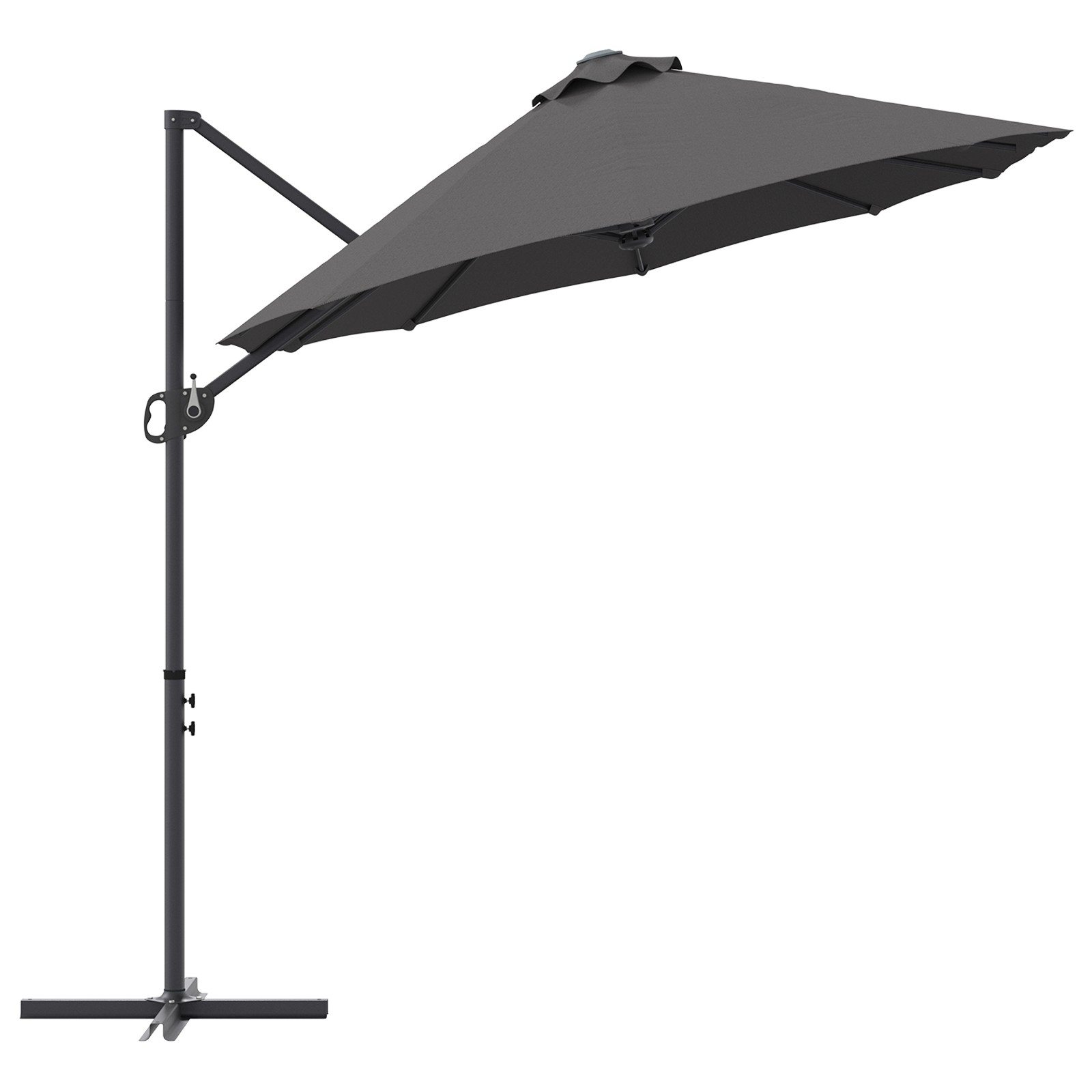 Dieser freischwingende Sonnenschirm verwandelt dein Outdoor-Erlebnis mit seinen smarten Funktionen und seinem stylischen Design. Er ist langlebig und sieht dabei gut aus, bietet dir viel Schatten und ist ein Must-Have für Balkone, Gärten und Terrassen – besonders im Sommer. Sein modernes Design und die verstellbare Konstruktion machen es möglich, das ganze Jahr über draußen zu entspannen. Verriegelungsmechanismus: Dieses smarte Sicherheitsmerkmal hält den Schirm sicher, wenn er geöffnet ist, und verhindert, dass er durch Wind oder Stöße zufällt. Entspanne dich, denn er bleibt auch bei leichtem Wind sicher stehen, selbst wenn Kinder darunter spielen. Einfacher Handkurbel: Mit einer einfachen Handkurbel lässt sich der Schirm problemlos öffnen und schließen. Es ist super einfach für die ganze Familie, egal ob Teenager oder Großeltern, und macht es leicht, deinen Schatten zu managen. Kippfunktion: Mit der Kippfunktion kannst du den Schirm perfekt für Schatten anpassen, während sich die Sonne bewegt. Ideal zum Lesen, für Mittagessen im Freien oder einfach nur zum Entspannen – egal, wo die Sonne steht, du bist gut abgedeckt. UV-Schutz: Hergestellt aus UV-beständigen, pulverbeschichteten Materialien, hält dieser Schirm der Sonne stand, ohne auszubleichen und verspricht eine lange Lebensdauer. Der wasserabweisende Stoff lässt leichten Regen abprallen, sodass du weiterhin viel Zeit im Freien genießen kannst, selbst wenn das Wetter mal nicht mitspielt. Pflege & Wartung: Damit dein Schirm gut aussieht und lange hält, benutze ein wasserfestes Spray für extra Schutz und eine Abdeckung, wenn du ihn nicht benutzt. Vermeide aggressive Reiniger, damit er über die Jahre hinweg auffällig und zuverlässig bleibt.