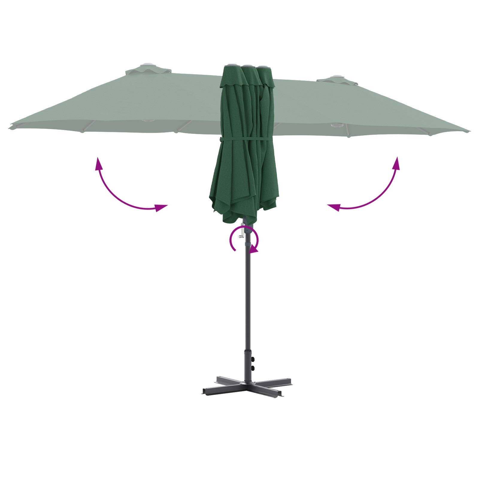 Dieser Terrassenparasols macht deinen Außenbereich besser. Er ist praktisch und passt perfekt auf Balkone, in Gärten oder auf Terrassen. Mit seinem modernen, schlichten Stil und geraden Linien ist er sowohl für schicke Essen im Freien als auch für entspannte Momente perfekt. Top-Material: Der Schirm ist aus pulverbeschichtetem Stahl und hält allem Wetter stand. Das Polyester-Dach ist toll, denn es bleibt trocken, wenn es mal regnet, und sieht den ganzen Sommer über schick aus. Praktische Funktionen: Mit dem drehbaren Kurbelgriff lässt sich der Schirm easy zusammenfalten und verstauen. Die Belüftung sorgt zudem dafür, dass es angenehm kühl bleibt. Einfach zu bedienen: Der Kurbelgriff macht das Öffnen und Schließen super easy, sodass jeder ihn nutzen kann. Von der Sonne in den Schatten zu wechseln, ist ein Kinderspiel. Ideal für: Dieser Schirm ist perfekt für Gärten, Balkone und Terrassen und schafft eine gemütliche Atmosphäre bei Treffen oder einfach beim Relaxen im Freien. Sein großer Schatten bietet Platz für viele Gelegenheiten, von großen Höfen bis zu kleinen Stadtbalkonen. Pflegehinweise: Um ihn länger gut zu halten, benutze eine Abdeckung, wenn er nicht gebraucht wird. Behandle das Material mit einem wasserfesten Spray, um die Wasserbeständigkeit zu erhöhen. Und versuche, ihn bei extremer Hitze nicht draußen stehen zu lassen, um ihn in Schuss zu halten.