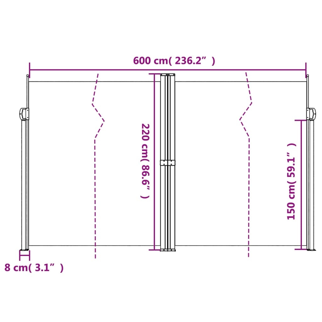 Mit dieser ausziehbaren Seitenmarkise schaffst du sofort eine private Oase auf deinem Balkon, auf deiner Terrasse bzw. in deinem Garten! Wasserfest und UV-beständig: Dieser Garten-Sichtschutz besteht zu 100% aus Polyester und ist mit einer PU-Beschichtung versehen, um eine gute Atmungsaktivität und einen ausgezeichneten Schutz vor Wind, Sonne, Wasser und UV-Strahlen zu bieten.Praktisches Design: Dank seines ausziehbaren Designs rollt die Outdoor-Markise automatisch zurück, wenn du den Griff vom Pfosten abnimmst.Einfache Montage: Die Pfosten lassen sich mit dem mitgelieferten Montagezubehör fest an am Boden befestigen, um zusätzliche Stabilität und Sicherheit zu gewährleisten.Vielseitig einsetzbar: Diese vielseitige Seitenmarkise lässt sich in einer Vielzahl von Umgebungen einsetzen, sowohl im Außenbereich wie im Hinterhof, Garten, auf der Terrasse, Veranda, dem Balkon usw. als auch in Innenräumen wie in Büros, Kliniken, Studios, Ankleideräumen usw., wo diese Markise ein ausgezeichneter Raumteiler sein wird.