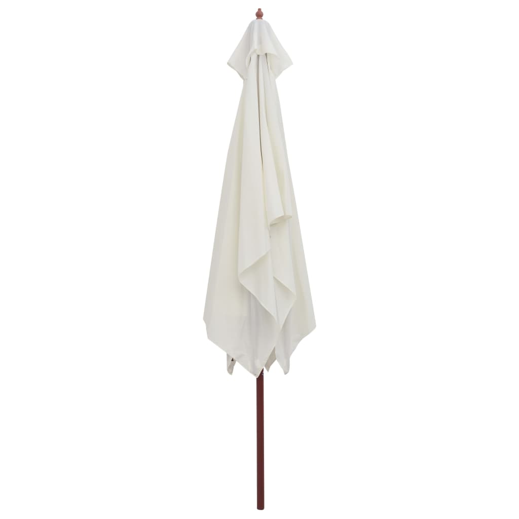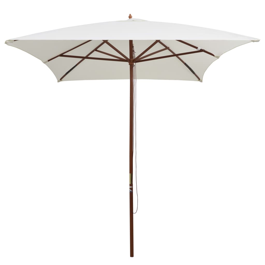 Dieser elegante Sonnenschirm aus Holz, der auf einem Schirmständer oder in das Loch in der Mitte eines Tisches befestigt werden kann, ist die perfekte Wahl, um Schatten zu spenden und dich vor schädlichen UV-Strahlen zu schützen, während du dich mit deiner Familie oder deinen Freunden entspannst. Der Gartenschirm lässt sich leicht öffnen und schließen. Der Sonnenschirmbezug ist aus UV-beständigem und farbechtem Polyester gefertigt. Der robuste Schirmmast aus Hartholz in einer schönen Teakholz-Farbe trägt zusammen mit den 6 robusten Schirmrippen zur Stabilität bei und macht den Sonnenschirm sehr langlebig und perfekt für den jahrelangen Einsatz im Außenbereich.
