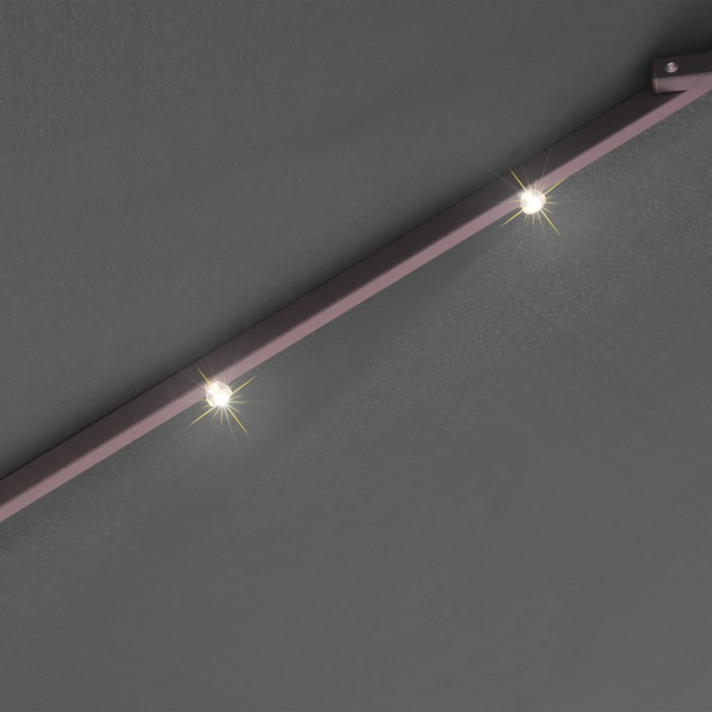 Dieser elegante Ampelschirm mit LED-Beleuchtung schafft nicht nur ein schattiges Plätzchen in deinem Garten, sondern bietet auch Schutz gegen schädliche UV-Sonnenstrahlen. Wenn die Sonne untergeht, beleuchten die stimmungsvollen, solarbetriebenen LEDs automatisch deinen Außenbereich. Die große Bespannung misst 300 cm im Durchmesser und ist aus UV-beständigem sowie farbechtem Polyestergewebe gefertigt. Dank des robusten Masts, der Rippen (8) und des Kreuzfußes aus Metall ist der Sonnenschirm sehr stabil und langlebig. Die Bespannung hängt frei auf dem Mast, sodass der Unterraum frei bleibt. Zudem lässt sich der Gartenschirm dank des Kurbelmechanismus leicht öffnen und schließen. Die 24 eingebauten LED-Leuchten, die über ein Solarmodul betrieben werden, schaffen nachts ein gemütliches und romantisches Ambiente. Die Montage ist kinderleicht.