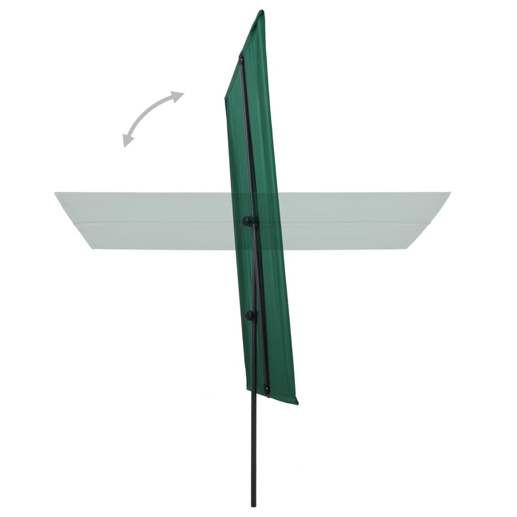 Dieser rechteckige Gartenschirm mit flachem Design schafft nicht nur ein schattiges Plätzchen, sondern bietet auch Schutz gegen schädliche UV-Sonnenstrahlen. Aus UV-beständigem und verblassfestem Polyester gefertigt, bietet dieser Sonnenschirm optimalen Schutz gegen schädliche Sonnenstrahlen und ist außerdem leicht zu reinigen. Die starken Aluminiummasten machen den Sonnenschirm sehr stabil und langlebig. Der Gartenschirm kann um 180 Grad gedreht werden und ist in der Höhe verstellbar, so dass Sie den Winkel des Schirmdaches leicht an die Bewegungen der Sonne anpassen können. Der Artikel ist einfach zu montieren. Hinweis: Dieser Artikel sollte NIEMALS bei rauen Wetterbedingungen, wie starkem Wind, Regenschauer, starkem Schneefall, Sturm, Hagel, usw., genutzt werden.