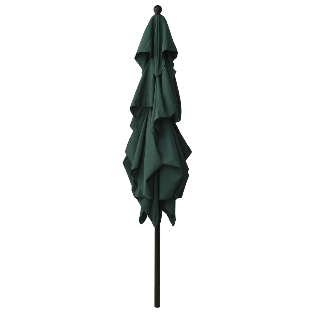 Dieser 3-lagige Sonnenschirm ist die perfekte Wahl, um dich sowohl vor schädlichen UV-Strahlen als auch vor Feuchtigkeit zu schützen, sei es auf deiner Terrasse oder in deinem Garten. Aus UV-beständigem und farbechtem Polyester gefertigt, bietet der Gartenschirm optimalen Schutz vor der Sonne. Der pulverbeschichtete Aluminium-Mast und die Schirmrippen sorgen für Stabilität. Dank Kurbel und Kippfunktion lässt sich der Schirm zusammenfalten und einfach transportieren. Er kann auf einem Sonnenschirmständer oder in der Mitte von Tischen mit Schirmloch angebracht werden.