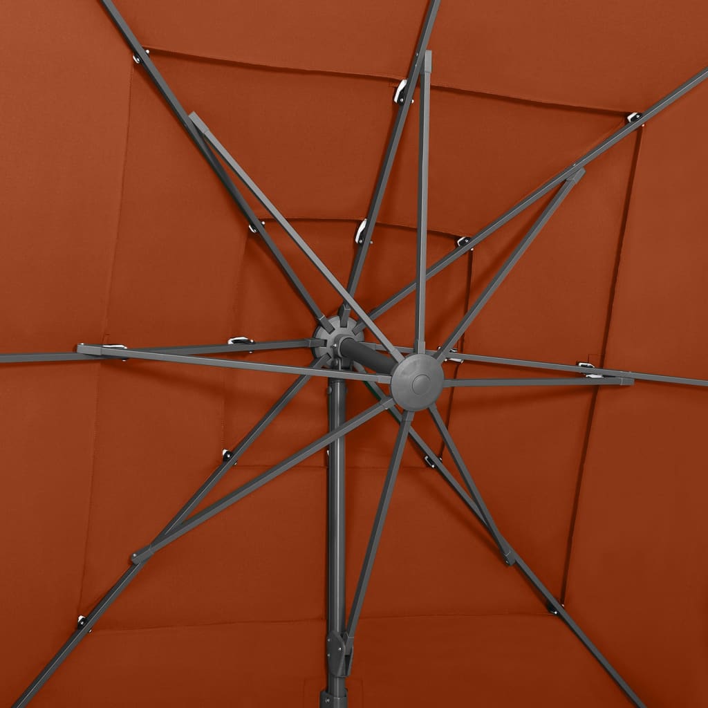 Dieser 4-lagige Sonnenschirm ist die perfekte Wahl, um dich sowohl vor schädlichen UV-Strahlen als auch vor Feuchtigkeit zu schützen, sei es auf deiner Terrasse oder in deinem Garten. Aus UV-beständigem und farbechtem Polyester gefertigt, bietet der Gartenschirm optimalen Schutz vor der Sonne. Der pulverbeschichtete Aluminium-Mast und die Schirmrippen sorgen für Stabilität. Dank Kurbel und Kippfunktion lässt sich der Schirm zusammenfalten und einfach transportieren. Er kann auf einem Sonnenschirmständer oder in der Mitte von Tischen mit Schirmloch angebracht werden.
