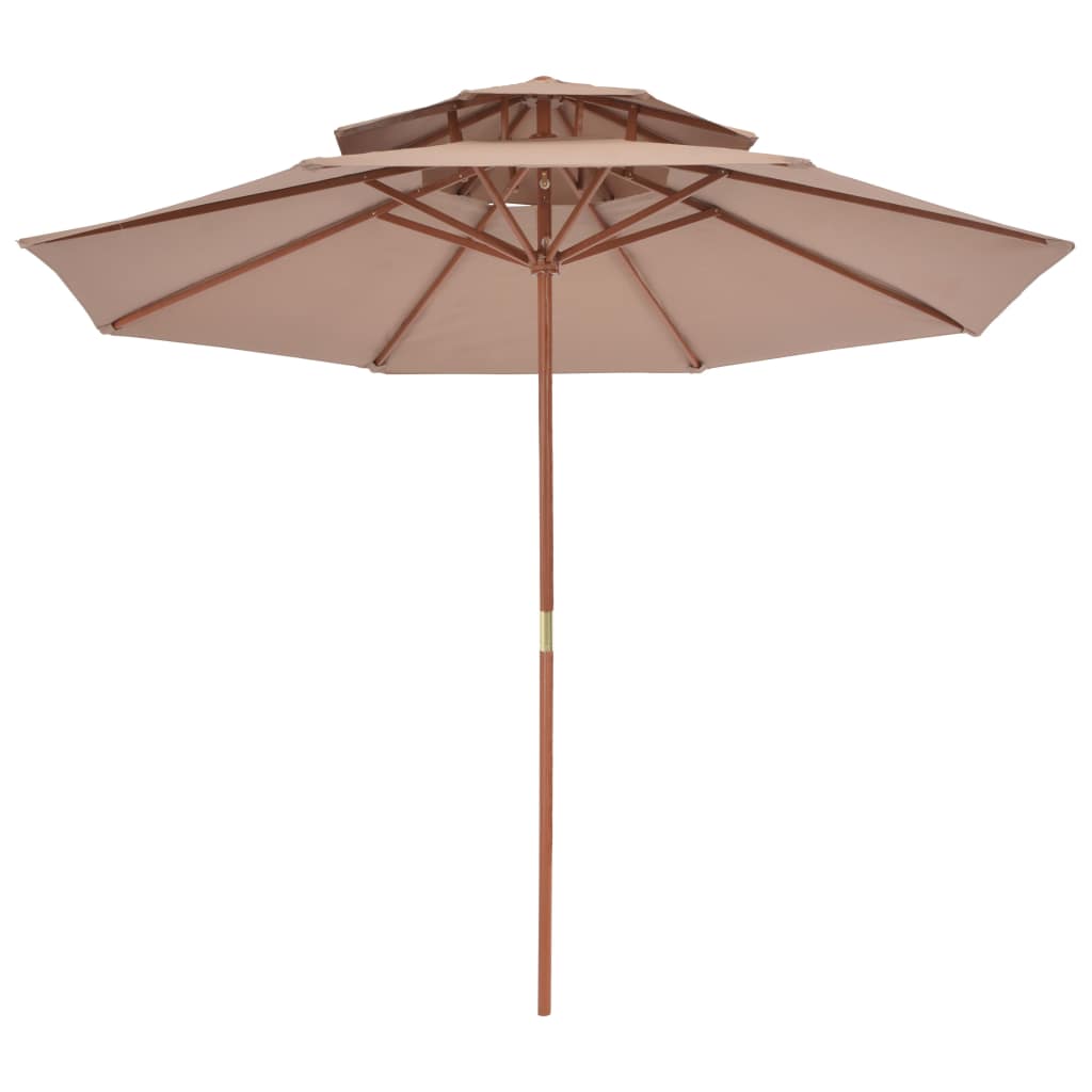 Dieser elegante Sonnenschirm aus Holz ist perfekt, um Schatten zu spenden und Schutz vor den schädlichen UV-Strahlen der Sonne zu bieten. Aus UV-beständigem und farbechtem Polyester gefertigt, bietet dieser pflegeleichte Sonnenschirm optimalen Schutz vor schädlichen Sonnenstrahlen. Mit einem Mastdurchmesser von 38 mm kann der Sonnenschutz auf einem Schirmständer oder in der Mitte eines mit Loch versehenen Tisches befestigt werden. Der robuste Holzmast zusammen mit den 8 starken Rippen machen den Sonnenschirm sehr stabil und langlebig. Der Schirmbezug mit Lüftung ermöglicht die Luftzirkulation an heißen Tagen. Der Gartenschirm kann mittels eines einfachen Flaschenzugs leicht geöffnet und geschlossen werden. Der Artikel lässt sich leicht zusammenbauen. Bitte beachten: Wir empfehlen, die Schirmbespannung mit einem Imprägnierspray zu behandeln, wenn es starken Regenfällen ausgesetzt ist.