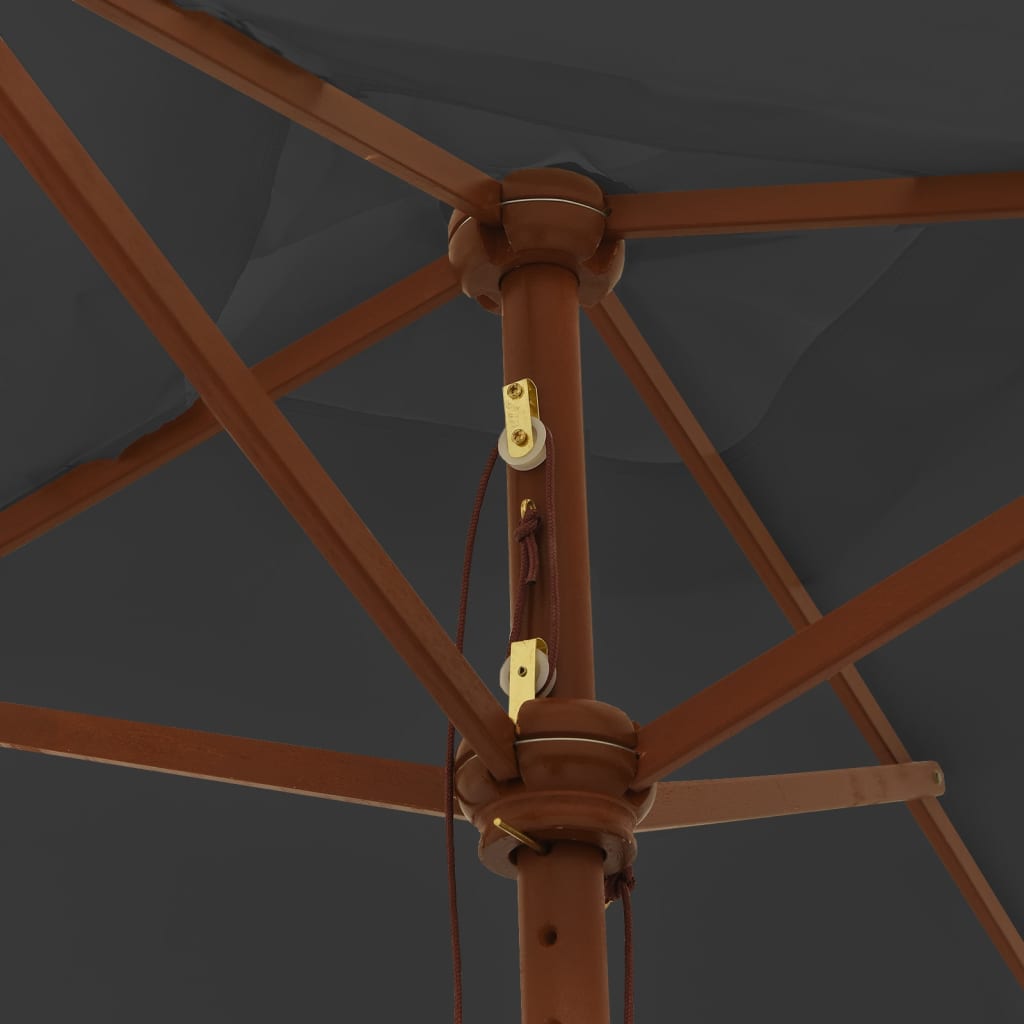 Dieser Sonnenschirm eignet sich perfekt, um Schatten zu spenden und dich vor den schädlichen UV-Strahlen der Sonne zu schützen. Langlebiges Material: Aus UV-beständigem und lichtechtem Polyester gefertigt, bietet der Sonnenschirm optimalen Schutz vor der Sonne und lässt sich einfach reinigen.Stabiles Gestell: Dank des robusten Mastes aus Hartholz und der langlebigen Rippen ist der Gartenschirm sehr stabil und langlebig.Belüftung: Das zusätzliche Stück Stoff an der Oberseite des Schirms lässt Wind und Wärme durch, was den Sonnenschirm zu einer wunderbaren Wahl für deinen Außenbereich macht.Einfache Bedienung: Der Sonnenschirm lässt sich dank des Seilzugsystems leicht öffnen und schließen. Hinweis:Dieses Produkt ist nicht zu 100 % wasserdicht. Wir empfehlen daher, es mit einem Imprägnierspray zu behandeln, um eine bessere Wasserfestigkeit zu gewährleisten.