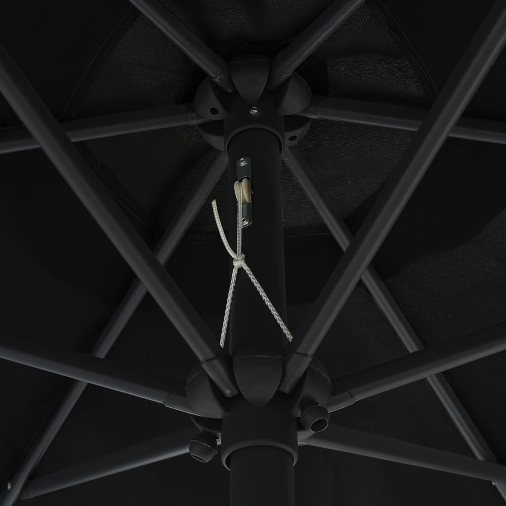 Dieser Sonnenschirm eignet sich perfekt, um Schatten zu spenden und dich vor den schädlichen UV-Sonnenstrahlen zu schützen. Aus UV-beständigem und farbechtem Polyester gefertigt, bietet dieser pflegeleichte Sonnenschirm optimalen Schutz vor schädlichen Sonnenstrahlen. Der robuste Alumast und die 6 starken Streben machen den Sonnenschirm sehr stabil und langlebig. Zudem lässt sich dieser Gartenschirm mittels Kurbel leicht öffnen und schließen. Die 18 integrierten LEDs, die über ein Solarmodul betrieben werden, schaffen abends ein gemütliches und romantisches Ambiente. Der Sonnenschutz lässt sich leicht zusammenbauen. Bitte beachten: Wir empfehlen, die Schirmbespannung mit einem Imprägnierspray zu behandeln, wenn es starken Regenfällen ausgesetzt ist.