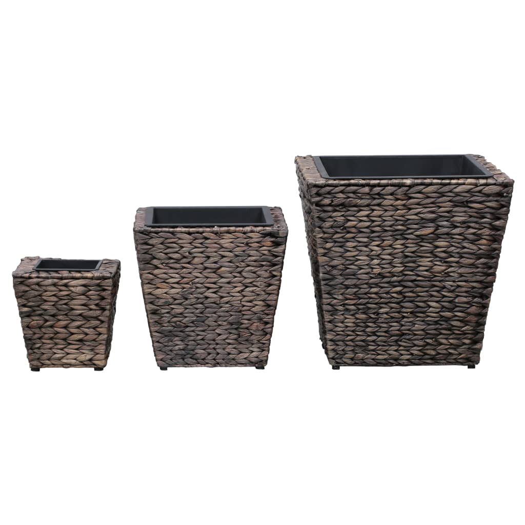 Präsentiere deine Blumen oder andere Pflanzen mit diesem rustikalen Hochbeet-Set aus Wasserhyazinthe! Die 3 Pflanzkübel haben unterschiedliche Größen, sodass du kreativ sein und sie nach Wunsch arrangieren kannst! Diese Pflanzgefäße aus Wasserhyazinthe sind äußerst langlebig und pflegeleicht. Zusätzlich erhöht der Stahlrahmen die Robustheit und Stabilität der Pflanztöpfe. Die Blumentöpfe lassen sich leicht mit einem feuchten Tuch reinigen. Jedes Pflanzgefäß ist mit herausnehmbaren Innentopf aus Kunststoff ausgestattet. Mit diesem schönen Pflanzkübel kannst du deinem Zuhause einen Hauch von Grün und rustikalen Eleganz verleihen! Nur für den Innenbereich geeignet. Die Lieferung umfasst 3 Blumenkübel in verschiedenen Größen.