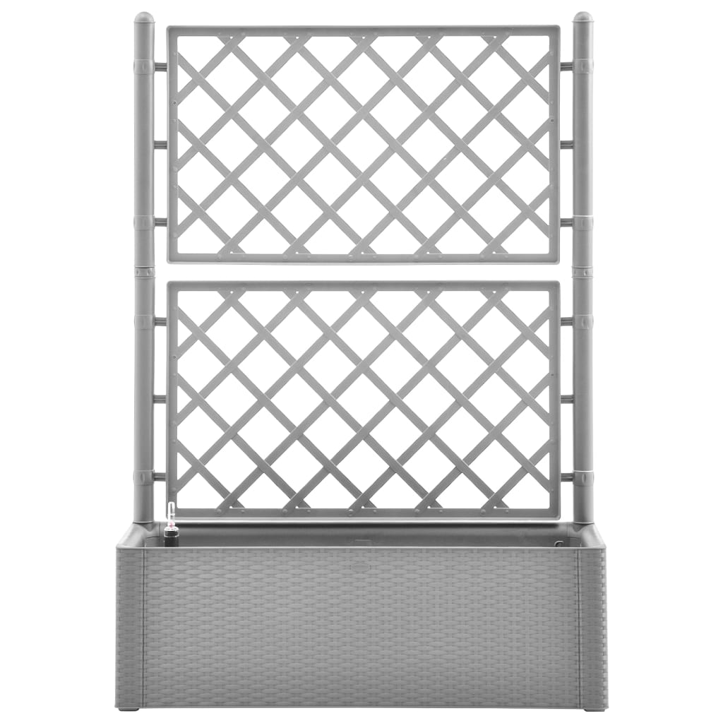 Schaffen Sie einen schönen Hingucker mit diesem eleganten, funktionalen und einzigartigen selbstbewässernden Hochbeet! Dieser Spalier-Pflanzkübel hat einen großen Blumenkasten, der eine große Anzahl grüner Pflanzen und Blumen aufnehmen kann. Das eingebaute Spalier bietet eine hervorragende Stütze für Kletterpflanzen wie Kräuter, Tomaten, Bohnen usw. Es besteht aus robustem UV-, wetter- und frostbeständigem Kunststoff und ist für den Innen- und Außenbereich geeignet. Das Design ähnelt einer täuschend realen Rattanstruktur. Das Material ist waschbar und leicht zu reinigen. Darüber hinaus kann diese Box Pflanzen automatisch gießen, indem sie Feuchtigkeit aus ihrem 90-l-Wasserreservoir ableitet, und verfügt über Wasserüberlauflöcher, um ein Überwässern zu verhindern. Die Füllstandsanzeige ist enthalten.