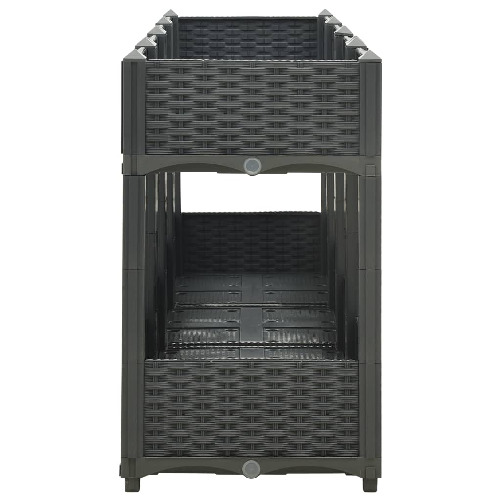 Dieses Hochbeet ist eine ausgezeichnete Wahl für Hobbygärtner, die ihren Garten, Balkon oder ihre Terrasse schön dekorieren möchten. Dieses Pflanzgefäß auf 2 Höhen ist aus Polypropylen gefertigt, wodurch es robust, strapazierfähig und für den täglichen Gebrauch im Freien geeignet ist. Das Hochbeet ist tief und breit genug, um eine große Menge an Erde aufzunehmen und bietet so ausreichend Platz für Ihre Pflanzen, Gemüse, Kräuter und Blumen. Schaffen Sie eine schöne Kulisse für Ihre Pflanzen mit diesem eleganten Pflanzbeet!