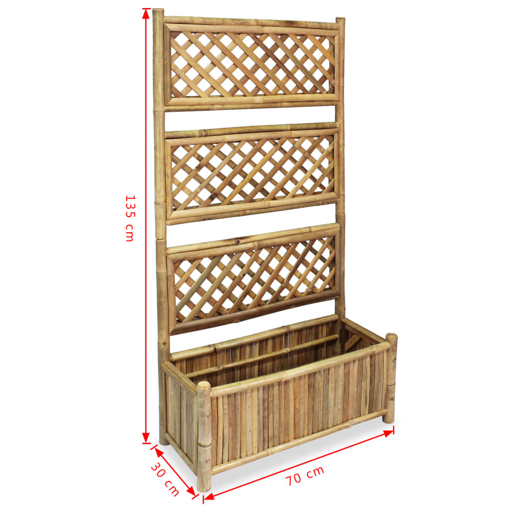 Dieser Pflanzkasten bietet eine perfekte Möglichkeit, eine reichhaltige Mischung aus Pflanzen und Blumen zu züchten. Das Spalier bietet eine besonders gute Rankhilfe für Kletterpflanzen. Dieser Pflanzenbehälter ist eine praktische und dekorative Ergänzung für Garten, Balkon, Terrasse usw. Das Pflanzgefäß-Rankgitter besteht aus wetterbeständigem und langlebigem Bambus, der deinem Wohnraum im Freien ein tropisches Flair verleiht. Das vertikale Design ist ein wahrer Platzsparer. Die Montage ist kinderleicht. Lagerung: Wenn möglich, an einem kühlen, trockenen Ort im Innenbereich lagern. Wenn das Produkt im Freien gelagert wird, verwende eine wasserdichte Abdeckplane für Gartenmöbel. Wische das überschüssige Wasser oder den Schnee nach Regen/Schneefall ab. Sorge für eine ausreichende Luftzirkulation, um feuchtigkeitsbedingte Schäden zu vermeiden.