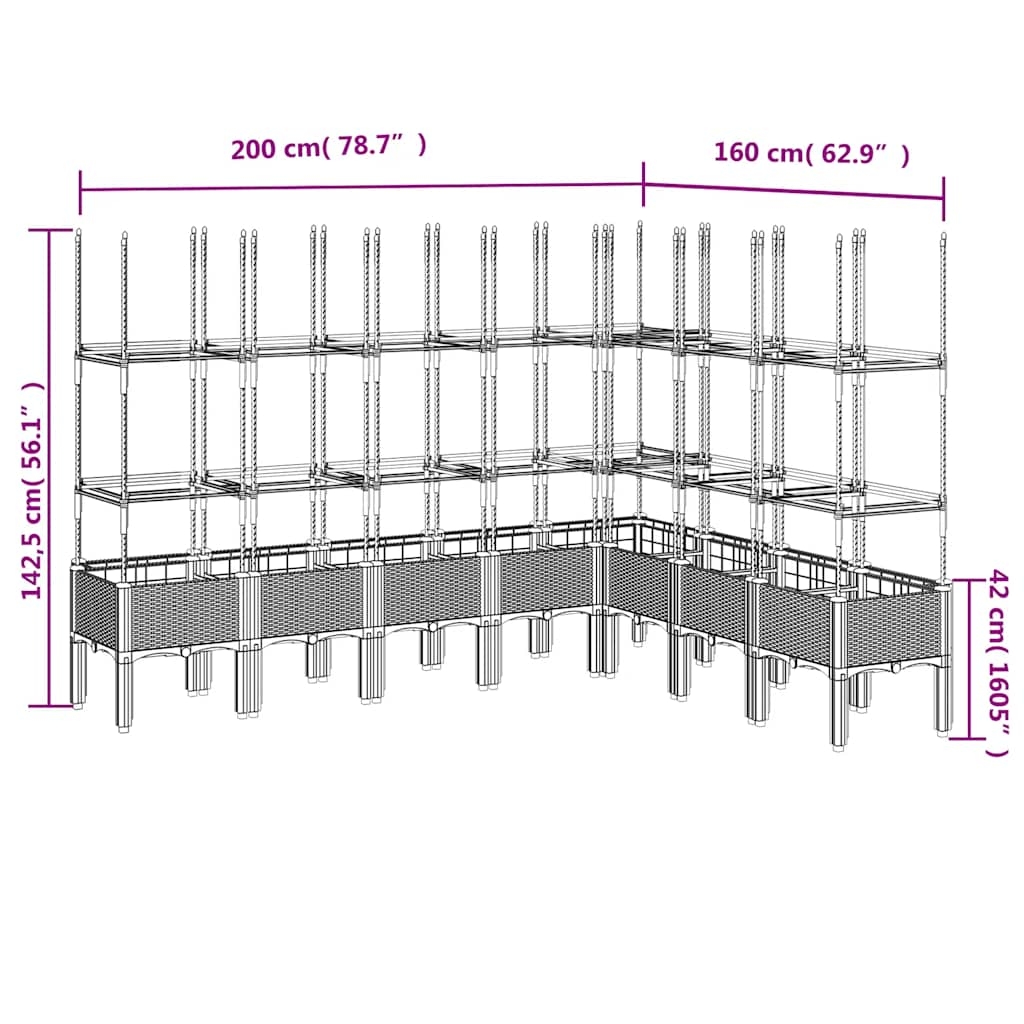 Dieser Blumenkübel mit Spalier ist eine ausgezeichnete Wahl für Kletterpflanzen in Ihrem Garten oder auf der Terrasse. Langlebiges Material: Polypropylen ist ein beliebter Kunststoff, der bei der Herstellung von Gartenmöbeln häufig verwendet wird. Er ist leicht, robust und stoßfest.Großzügiges Fassungsvermögen: Der Pflanzkübel bietet viel Platz für den Anbau von Gemüse, Blumen und anderen Pflanzen.Praktisches Design: Die ideale Bodenschicht bewahrt die Feuchtigkeit und ermöglicht eine leichte Drainage. Zudem bietet das integrierte Spalier eine großartige Rankhilfe für Kletterpflanzen wie Tomaten, Erbsen und Rosen.Ansprechende Rattan-Optik: Mit seiner ansprechenden Rattan-Optik verleiht der Pflanzkübel deinem Außenbereich eine elegante Note.Erhöhtes Design: Der erhöhte Design dieses Pflanzkastens kann deine Pflanzen vor Unkraut und Schädlingen schützen.