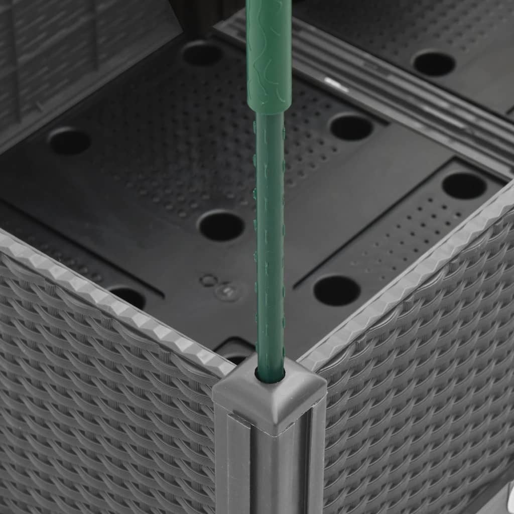 Dieser Blumenkübel mit Spalier ist eine ausgezeichnete Wahl für Kletterpflanzen in Ihrem Garten oder auf der Terrasse. Langlebiges Material: Polypropylen ist ein beliebter Kunststoff, der bei der Herstellung von Gartenmöbeln häufig verwendet wird. Er ist leicht, robust und stoßfest.Großzügiges Fassungsvermögen: Der Pflanzkübel bietet viel Platz für den Anbau von Gemüse, Blumen und anderen Pflanzen.Praktisches Design: Die ideale Bodenschicht bewahrt die Feuchtigkeit und ermöglicht eine leichte Drainage. Zudem bietet das integrierte Spalier eine großartige Rankhilfe für Kletterpflanzen wie Tomaten, Erbsen und Rosen.Ansprechende Rattan-Optik: Mit seiner ansprechenden Rattan-Optik verleiht der Pflanzkübel deinem Außenbereich eine elegante Note.Erhöhtes Design: Der erhöhte Design dieses Pflanzkastens kann deine Pflanzen vor Unkraut und Schädlingen schützen.