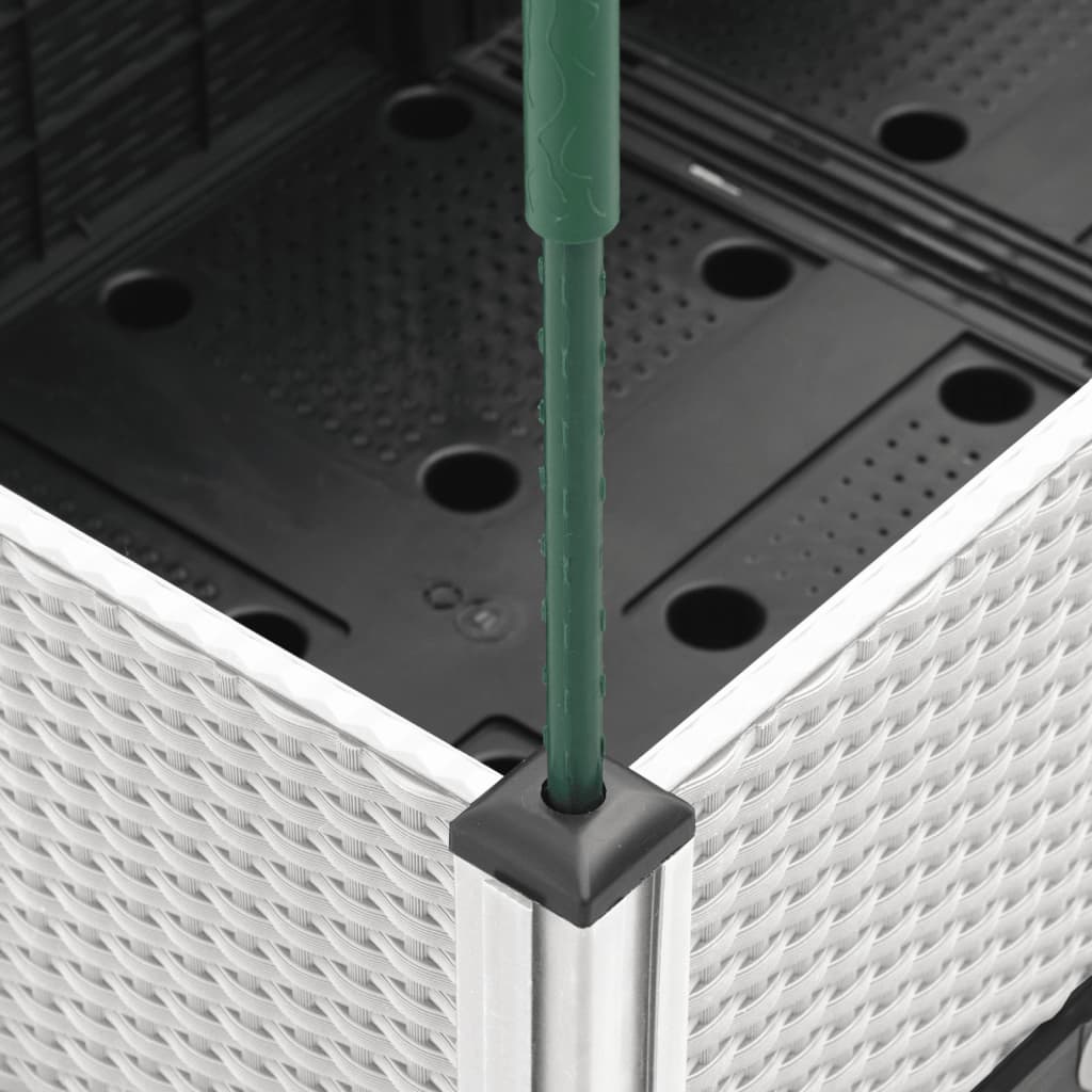 Dieser Blumenkübel mit Spalier ist eine ausgezeichnete Wahl für Kletterpflanzen in Ihrem Garten oder auf der Terrasse. Langlebiges Material: Polypropylen ist ein beliebter Kunststoff, der bei der Herstellung von Gartenmöbeln häufig verwendet wird. Er ist leicht, robust und stoßfest.Großzügiges Fassungsvermögen: Der Pflanzkübel bietet viel Platz für den Anbau von Gemüse, Blumen und anderen Pflanzen.Praktisches Design: Die ideale Bodenschicht bewahrt die Feuchtigkeit und ermöglicht eine leichte Drainage. Zudem bietet das integrierte Spalier eine großartige Rankhilfe für Kletterpflanzen wie Tomaten, Erbsen und Rosen.Ansprechende Rattan-Optik: Mit seiner ansprechenden Rattan-Optik verleiht der Pflanzkübel deinem Außenbereich eine elegante Note.Erhöhtes Design: Der erhöhte Design dieses Pflanzkastens kann deine Pflanzen vor Unkraut und Schädlingen schützen.