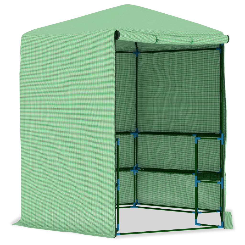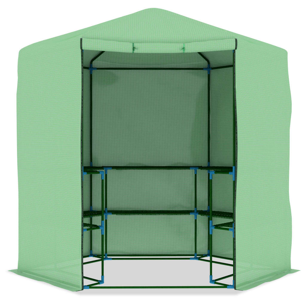 In diesem geräumigen Gewächshaus finden eine beträchtliche Anzahl von Obst, Gemüse und Pflanzen Platz. Dieses Gewächshaus bietet eine großartige Lösung, um deine Pflanzen vor Wind, Regen, Sonne und Vogelschäden zu schützen. Das Gewächshaus ist aus 170 g/m² PE-Netzgewebe gefertigt, das 25 % schwerer als das Standard-Netzgewebe vieler Konkurrenten ist. Dieses Pflanzenhaus besitzt einen robusten und rostfreien Stahlrahmen mit Pulverbeschichtung, der für zusätzliche Stabilität sorgt. Auf den Ablagen lassen sich die Pflanzen ordentlich aufbewahren und zur Schau stellen. Die Tür sorgt für eine gute Belüftung und einen einfachen Zugang. Das Gewächshaus lässt sich einfach zusammenbauen. Bitte beachte, dass das Dach unseres Gewächshauses keinen starken Schneefällen standhält. Achtung: Das Gewächshaus ist kein Partyzelt oder Wintergarten, es ist also nicht für Freizeitaktivitäten vorgesehen. Es handelt sich um eine landwirtschaftliche Baute, die nur für den Hobby-Gartenbau bestimmt ist.