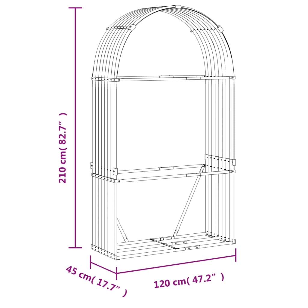 Dieser Kaminholzhalter ist eine ideale Lösung für die ordentliche Aufbewahrung deines Brennholzes. Es ist ein Muss für jeden, der einen Kamin oder einen Holzofen hat. Der Kaminholzunterstand bewahrt das Brennholz sicher und leicht zugänglich auf. Robust und stabil: Dieser Kaminholzunterstand besteht aus hochbelastbaren Stahlblechen und ist daher sowohl stabil als auch langlebig. Darüber hinaus ist er mit einer galvanischen Beschichtung versehen, was ihn vor rauen Wetterbedingungen schützt. So ist das Brennholzregal das ideale Wahl für die Holzaufbewahrung im Garten.Viel Stauraum: Dieser Kaminholzhalter bietet ausreichend Platz für eine große Menge Holzscheite, sodass du das Feuer problemlos nachfüllen und in den Wintermonaten warm bleiben kannst.Gute Belüftung: Das Brennholzlager hält die Holzscheite vom Boden fern, um die Belüftung zu verbessern und das Brennholz trocken zu halten.Zusätzliche Stabilität: Dieses Kaminholzregal ist mit 2 Haken ausgestattet, sodass du es für mehr Stabilität und Sicherheit an der Wand befestigen kannst. Achtung:Um das Umkippen zu verhindern, muss dieses Produkt mit der mitgelieferten Wandhalterung gesichert werden.