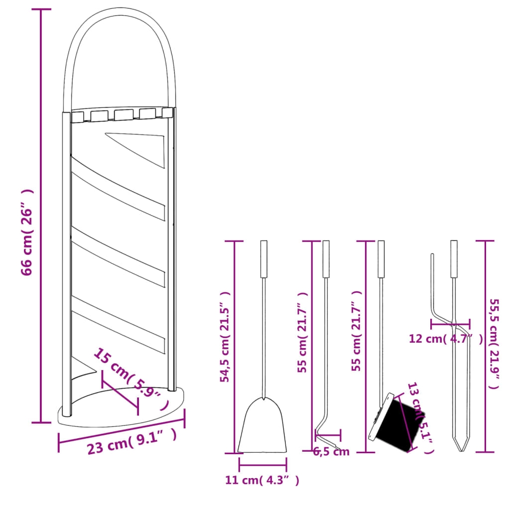 Dieses Kaminwerkzeug-Set ist für Familien geeignet, die einen sauberen und gut ausgestatteten Kamin genießen möchten. Robust und langlebig: Das Schürhaken-Set ist aus robustem Stahl mit Pulverbeschichtung gefertigt und dadurch auf eine lange Lebensdauer ausgelegt.Praktisch und bequem: Das Kaminset besteht aus einem robusten Ständer, einem Schürhaken, einer Zange, einem Besen und einer Schaufel, um mühelos Asche und Schmutz zu beseitigen. Durch die langsame Wärmeübertragung wird das Verbrennen der Finger vermieden.Einfache Bedienung: Auf dem Ständer lassen sich alle Werkzeuge ordentlich aufhängen. Dadurch weist das gesamte Set eine dekorative und ästhetische Optik auf. Zudem erleichtert der gebogene Griff den Transport.Platzsparend: Das Schürhaken-Set nimmt kaum Platz in Anspruch und sorgt für mehr Ordnung und Komfort in deinem Zimmer.