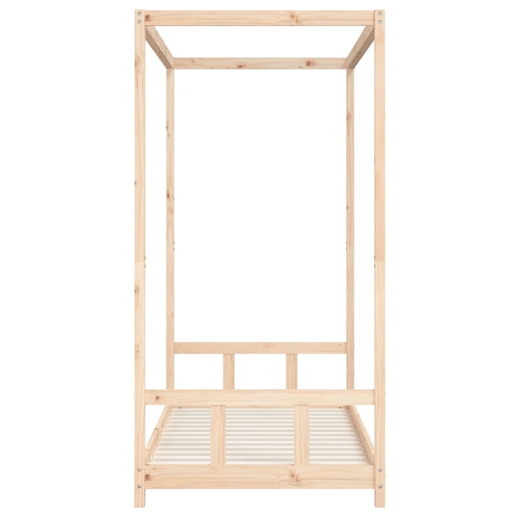 Mit diesem fantastischen Kinderbett aus Holz bietest du deinen Kleinen einen eigenen lustigen Platz! Massives Kiefernholz: Das Kinderbett ist aus massivem Kiefernholz gefertigt. Massives Kiefernholz ist ein wunderschönes Naturmaterial. Kiefernholz weist eine gerade Maserung auf und die Aststellen verleihen dem Material seine charakteristische, rustikale Optik.Robuste Latten: Das Kinderbett ist mit Holzlatten versehen, die für einen festen Halt, Belüftung und Stabilität sorgen.Himmelbett: Dieses Kleinkinderbett ist mit einem Baldachin-Bettgestell ausgestattet, an dem du Bettvorhänge aufhängen kannst, um Privatsphäre für dein Kind zu schaffen.Durchdachtes Design: Dank der geringen Höhe des Einzelbettes können Kinder leicht ins Bett ein- und aussteigen.