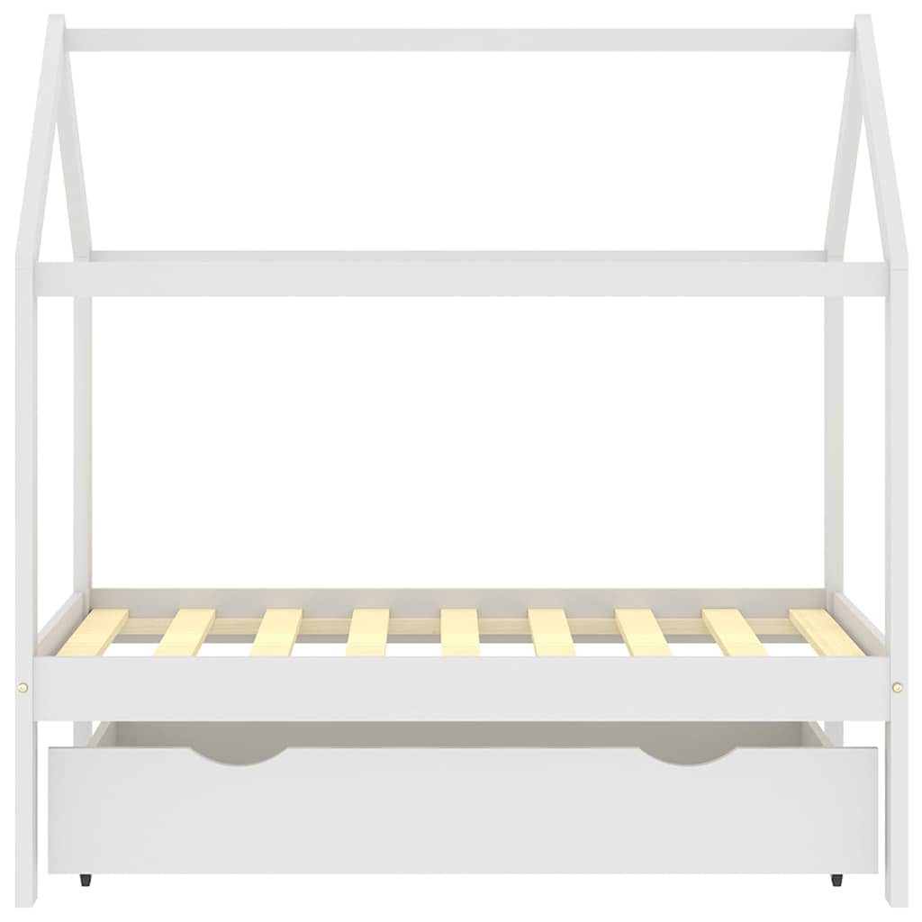 Dieses Holz-Kinderbett mit Schublade ist eine praktische und dekorative Bereicherung für jedes Kinderzimmer. Das Bett ist mit seinem Rahmen im Baumhaus-Stil intelligent gestaltet. Darauf können Sie Bettvorhänge aufhängen, um Ihrem Kind Privatsphäre zu bieten. Das Bett kann auch als Leseecke oder Spielhaus verwendet werden. Aus massivem Kiefernholz gefertigt, ist dieses Bettgestell äußerst stabil und langlebig. Die robusten Latten bieten den nötigen Halt und sind sehr bequem. Die mitgelieferte Schublade mit 2 Griffen stellt reichlich Stauraum für Kleidung, Spielzeuge usw. zur Verfügung, um für Ordnung im Kinderzimmer zu sorgen. Die leichtgängigen Rollen lassen sich sowohl auf Teppich- als auch auf Holzböden einsetzen. Dieser Bettrahmen ist für eine Matratze von 70 x 140 cm geeignet. Bitte beachten Sie, dass die Lieferung nur das Bettgestell beinhaltet. Eine Matratze und Vorhänge sind nicht enthalten. Das Bettgestell ist leicht zu montieren. In unserem Shop finden Sie auch eine dazu passende Matratze.