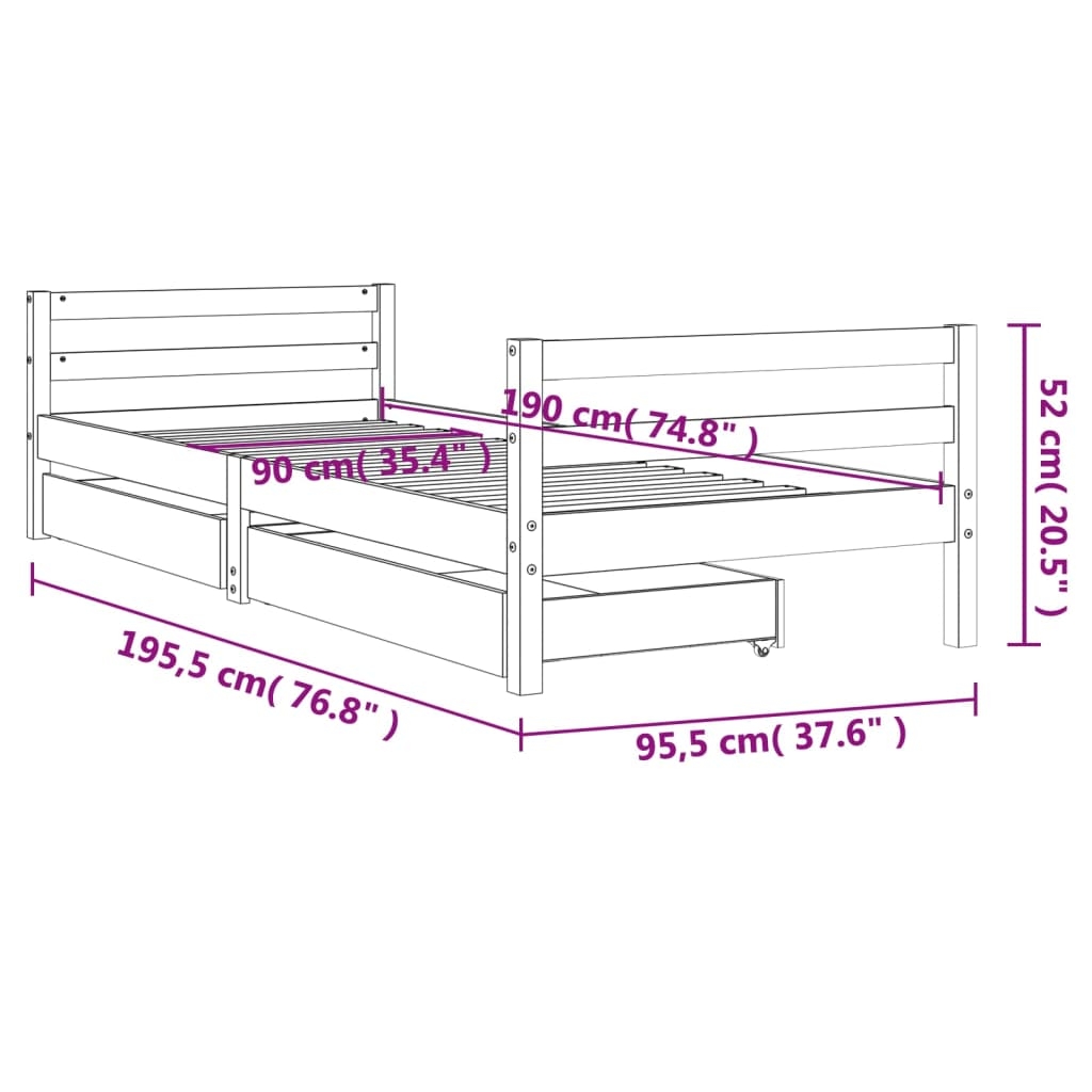 In diesem Kinderbett aus Holz genießt dein Kleiner eine erholsame Nachtruhe. Mit seinem eleganten und zeitlosen Design ist es die perfekte Wahl für deine Kinder! Massives Kiefernholz: Das Kinderbett ist aus massivem Kiefernholz gefertigt. Massives Kiefernholz ist ein wunderschönes Naturmaterial. Kiefernholz weist eine gerade Maserung auf und die Aststellen verleihen dem Material seine charakteristische, rustikale Optik.Robuste Latten: Das Kinderbett ist mit Holzlatten versehen, die für einen festen Halt, Belüftung und Stabilität sorgen.Mit Schubladen: Die mitgelieferten Schubladen bieten reichlich Platz für die Aufbewahrung von Kleinspielzeug, Kleidung und Bettzeug, um für Ordnung im Kinderzimmer zu sorgen.Praktisches Kopfteil und Fußteil: Dank des Kopf- und des Fußteils bleibt die Matratze stabil an ihrem Platz.Durchdachtes Design: Dank der geringen Höhe des Einzelbettes können Kinder leicht ins Bett ein- und aussteigen. Gut zu wissen:Bei diesem Bett ist keine Matratze im Lieferumfang enthalten. Wir bieten jedoch eine große Auswahl an Matratzen an. Du kannst in unserem Shop nach einer passenden Matratze suchen.