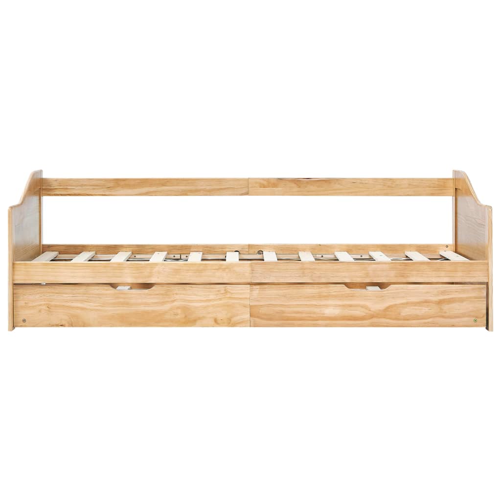 Dieses Multifunktions-Schlafsofa kombiniert den Luxus eines Sofas mit dem Komfort eines Gästebettes und ist daher sowohl eine praktische als auch eine auffällige Bereicherung für jedes Interieur! Mit einem unteren Ausziehbett, das mit 4 Rollen versehen ist, lässt sich das Möbelstück tagsüber leicht in ein Sofa und nachts in ein bequemes Bett verwandeln. Dieses Tagesbett-Gestell maximiert die verfügbare Bodenfläche und bietet gleichzeitig Schlafplatz für zwei Personen. Dies macht ihn zur idealen Wahl für Personen mit begrenztem Wohnraum. Darüber hinaus ist das untere Bett mit einem Seitenbrett ausgestattet, welches das Herausrollen des Benutzers während des Schlafs verhindert. Das gesamte Bettgestell hat eine robuste Holzkonstruktion, die es sehr langlebig und alltagstauglich macht. Der Artikel ist einfach zu montieren. Bitte beachten Sie, dass die Lieferung nur das Bettgestell beinhaltet. Eine Matratze ist nicht enthalten. Sie können unseren Shop besuchen, um eine dazu passenden Matratze zu kaufen.