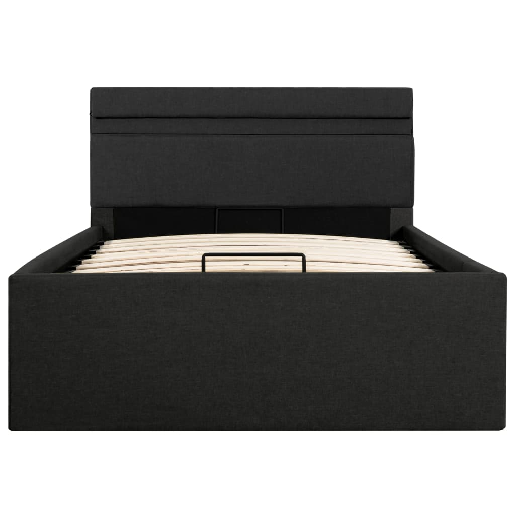 Verleihen Sie Ihrem Schlafzimmer mit diesem hydraulischen Bettgestell aus Stoff sofort ein beeindruckendes und modernes Aussehen! Dieses Einzelbett zeichnet sich durch ein schlichtes und zugleich stilvolles Design sowie einer soliden Konstruktion aus, da es aus starkem und robustem MDF gefertigt ist. Dieses Polsterbett verwandelt den ungenutzten Raum unter der Matratze in einen Stauraum mit viel Platz zur Aufbewahrung von Kleidung, Laken, Decken usw. Der hydraulische Gashebemechanismus macht das Anheben der Matratze zum Kinderspiel. Der Lattenrost steht nach dem Anheben aufrecht, sodass du beide Hände frei hast, um darunter liegende Gegenstände zu entfernen oder zu verstauen. Der Rahmen aus pulverbeschichtetem Stahl und die Sperrholzlatten verleihen dem Bett zusätzliche Robustheit und Langlebigkeit. Mit einem Bezug aus glänzendem Kunstleder versehen, wirkt dieses Bett mit Bettkasten einladend und ist pflegeleicht. Dieses Boxspringbett ist für eine Matratze von 90 x 200 cm ausgelegt. Zudem kannst du mit der mitgelieferten 24-Tasten-Fernbedienung bequem die Leistung, die Helligkeit und die verschiedenen Lichtfarben der LED-Beleuchtung einstellen, um eine atemberaubende Atmosphäre zu erzeugen. Dieses Produkt ist einfach zu montieren. Bitte beachte, dass im Lieferumfang nur das Bettgestell enthalten ist. Eine Matratze ist nicht im Lieferumfang enthalten. In unserem Shop findest du die passenden Matratzen. Hinweis: Das Produkt verfügt über einen USB-Anschluss, aber die zertifizierte 5-V-USB-Stromquelle ist nicht im Lieferumfang enthalten.