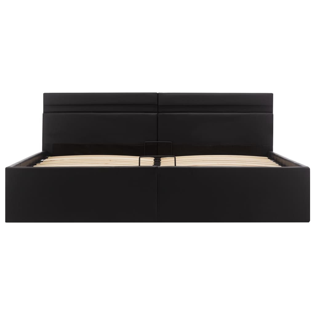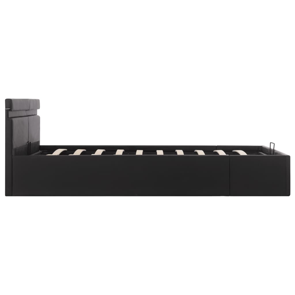 Mit unserem hydraulischen Kunstlederbett verleihst du deinem Schlafzimmer im Handumdrehen eine beeindruckende moderne Note! Dieses Doppelbett zeichnet sich durch ein schlichtes und dennoch stilvolles Design sowie eine solide Konstruktion aus, da es aus starkem und robustem MDF gefertigt ist. Dieses Polsterbett verwandelt den ungenutzten Raum unter der Matratze in einen Stauraum mit viel Platz zur Aufbewahrung von Kleidung, Laken, Decken usw. Der hydraulische Gashebemechanismus macht das Anheben der Matratze zum Kinderspiel. Der Lattenrost steht nach dem Anheben aufrecht, sodass du beide Hände frei hast, um darunter liegende Gegenstände zu entfernen oder zu verstauen. Der pulverbeschichtete Stahlrahmen und die Sperrholzlatten tragen zur Stabilität und Haltbarkeit des Bettes bei. Dieses Stauraumbett ist mit glänzendem Kunstleder bezogen, sieht einladend aus und ist leicht zu pflegen. Dieses Bettgestell ist für eine Matratze von 160 x 200 cm geeignet. Es ist mit LED-Beleuchtung ausgestattet, die sich leicht einstellen lassen, um eine individuelle Lichtshow zu erzeugen. Du kannst die Modi, die Farben und die Helligkeit individuell anpassen, um das Ambiente deines Innenraums zu verbessern. Dieses Produkt ist einfach zu montieren. Bitte beachte, dass im Lieferumfang nur das Bettgestell enthalten ist. Eine Matratze ist nicht im Lieferumfang enthalten. In unserem Shop findest du die passenden Matratzen. Hinweis: Das Produkt verfügt über einen USB-Anschluss, aber die zertifizierte 5-V-USB-Stromquelle ist nicht im Lieferumfang enthalten.