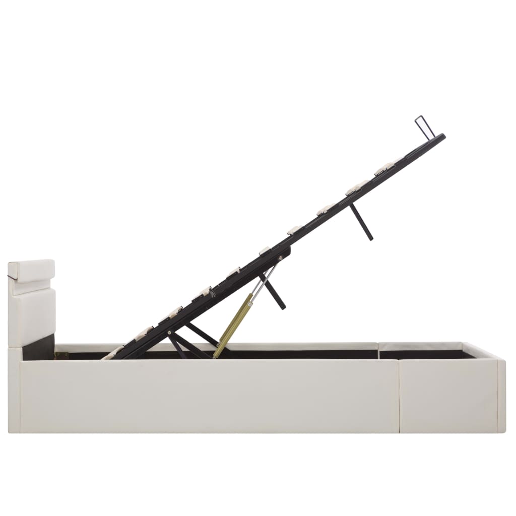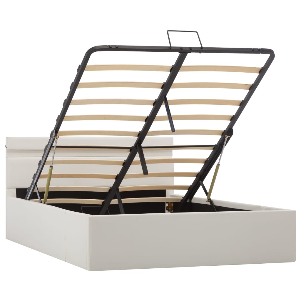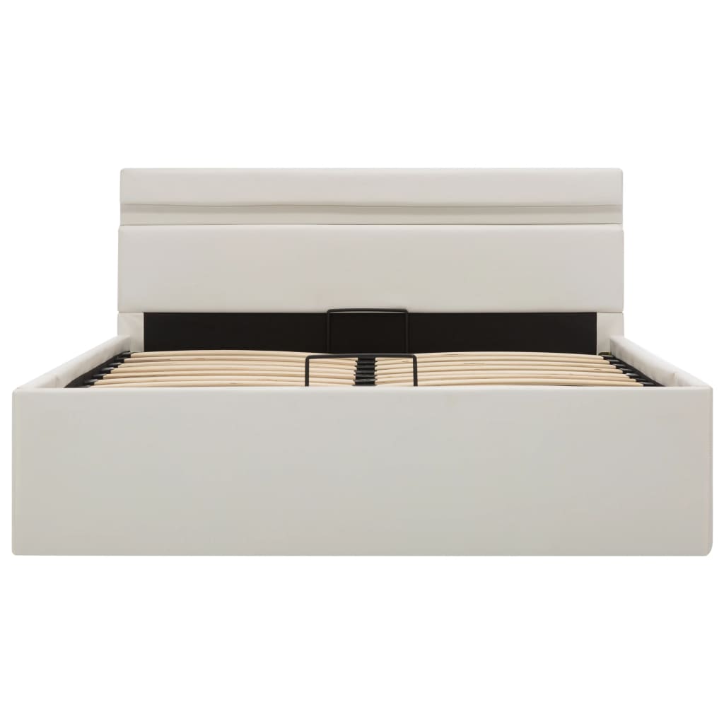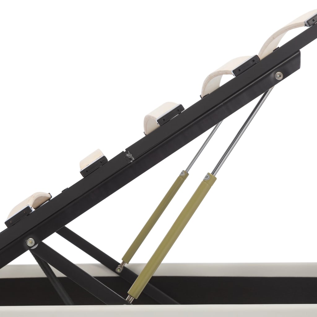 Mit unserem hydraulischen Kunstlederbett verleihst du deinem Schlafzimmer im Handumdrehen eine beeindruckende moderne Note! Dieses Doppelbett zeichnet sich durch ein schlichtes und dennoch stilvolles Design sowie eine solide Konstruktion aus, da es aus starkem und robustem MDF gefertigt ist. Dieses Polsterbett verwandelt den ungenutzten Raum unter der Matratze in einen Stauraum mit viel Platz zur Aufbewahrung von Kleidung, Laken, Decken usw. Der hydraulische Gashebemechanismus macht das Anheben der Matratze zum Kinderspiel. Der Lattenrost steht nach dem Anheben aufrecht, sodass du beide Hände frei hast, um darunter liegende Gegenstände zu entfernen oder zu verstauen. Der pulverbeschichtete Stahlrahmen und die Sperrholzlatten tragen zur Stabilität und Haltbarkeit des Bettes bei. Dieses Stauraumbett ist mit glänzendem Kunstleder bezogen, sieht einladend aus und ist leicht zu pflegen. Dieses Bettgestell ist für eine Matratze von 120 x 200 cm geeignet. Es ist mit LED-Beleuchtung ausgestattet, die sich leicht einstellen lassen, um eine individuelle Lichtshow zu erzeugen. Du kannst die Modi, die Farben und die Helligkeit individuell anpassen, um das Ambiente deines Innenraums zu verbessern. Dieses Produkt ist einfach zu montieren. Bitte beachte, dass im Lieferumfang nur das Bettgestell enthalten ist. Eine Matratze ist nicht im Lieferumfang enthalten. In unserem Shop findest du die passenden Matratzen. Hinweis: Das Produkt verfügt über einen USB-Anschluss, aber die zertifizierte 5-V-USB-Stromquelle ist nicht im Lieferumfang enthalten.