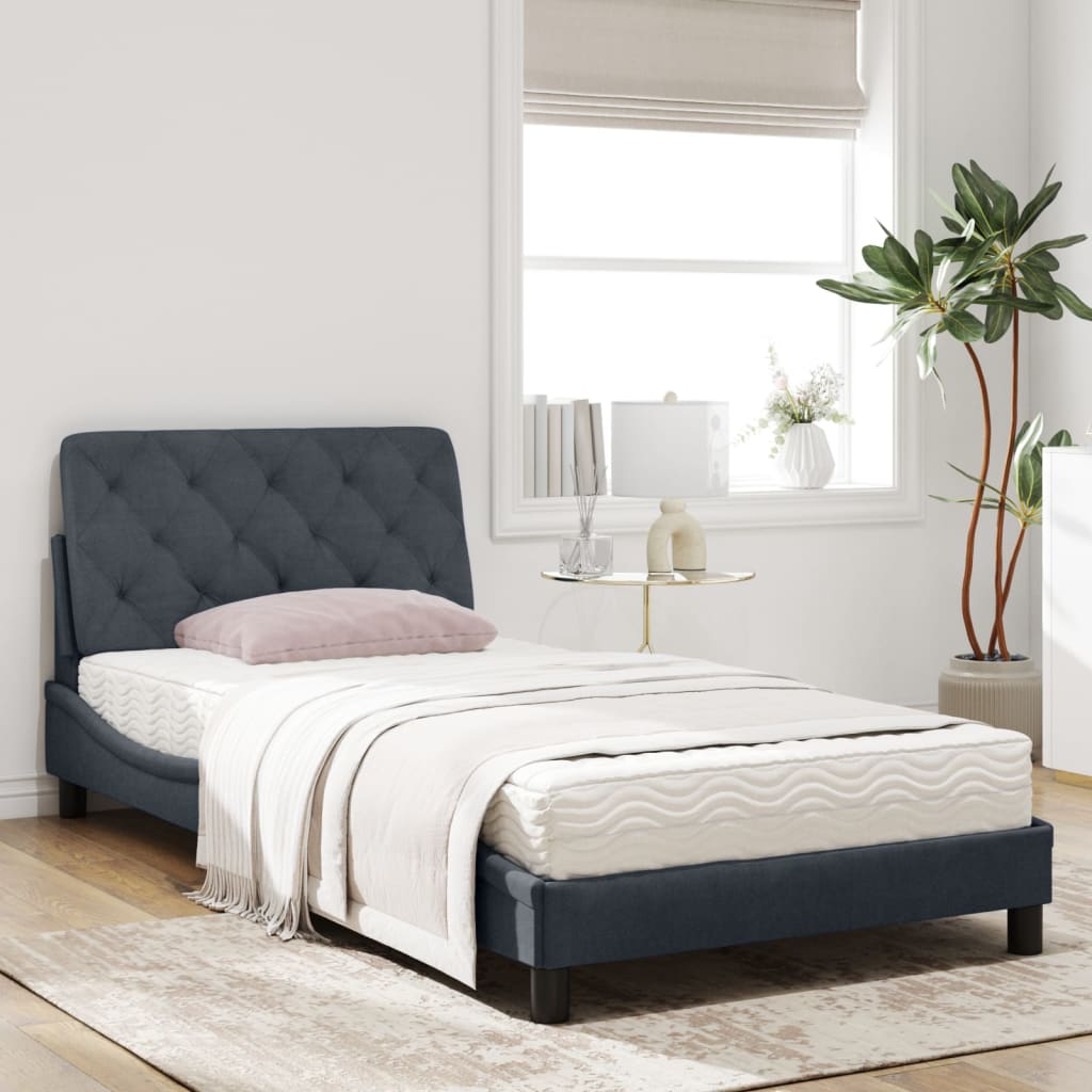 In diesem Bett mit Matratze genießt du einen besseren, erholsameren Schlaf! Es ist eine einladende Ergänzung zu jedem Schlafzimmer. Weicher Samt: Samt ist ein weicher und bequemer Stoff, der sich angenehm auf der Haut anfühlt.Sperrholzlatten: Die Sperrholzlatten sorgen für eine gute Gewichtsverteilung und auch dafür, dass die Matratze bei jeder Bewegung deines Körpers während des Schlafes an Ort und Stelle bleibt.Hervorragende Unterstützung: Das Bett-Kopfteil bietet dir eine hervorragende Unterstützung, während du im Bett sitzt, um zu lesen oder fernzusehen.Schaumstoffmatratze: Die Bettmatratze besteht aus 3 Schichten und ist mit 22D PU-Schaumstoff gefüllt, um optimalen Komfort zu bieten. Sie lindert Müdigkeit und fördert die Blutzirkulation, um für vollständige Entspannung und einen guten Schlaf nach einem langen Tag zu sorgen. Zudem besitzt die Matratze die Härtegrade H2 und H3, sodass du durch einfaches Wenden der Matratze den Härtegrad wählen kannst, der deinen Anforderungen bestens entspricht.Wellenförmiges Seitendesign: Das stilvolle und raffinierte Design in Wellenform verleiht deiner Einrichtung eine moderne und elegante Note und macht das Bettgestell zum Mittelpunkt deines Schlafzimmers.