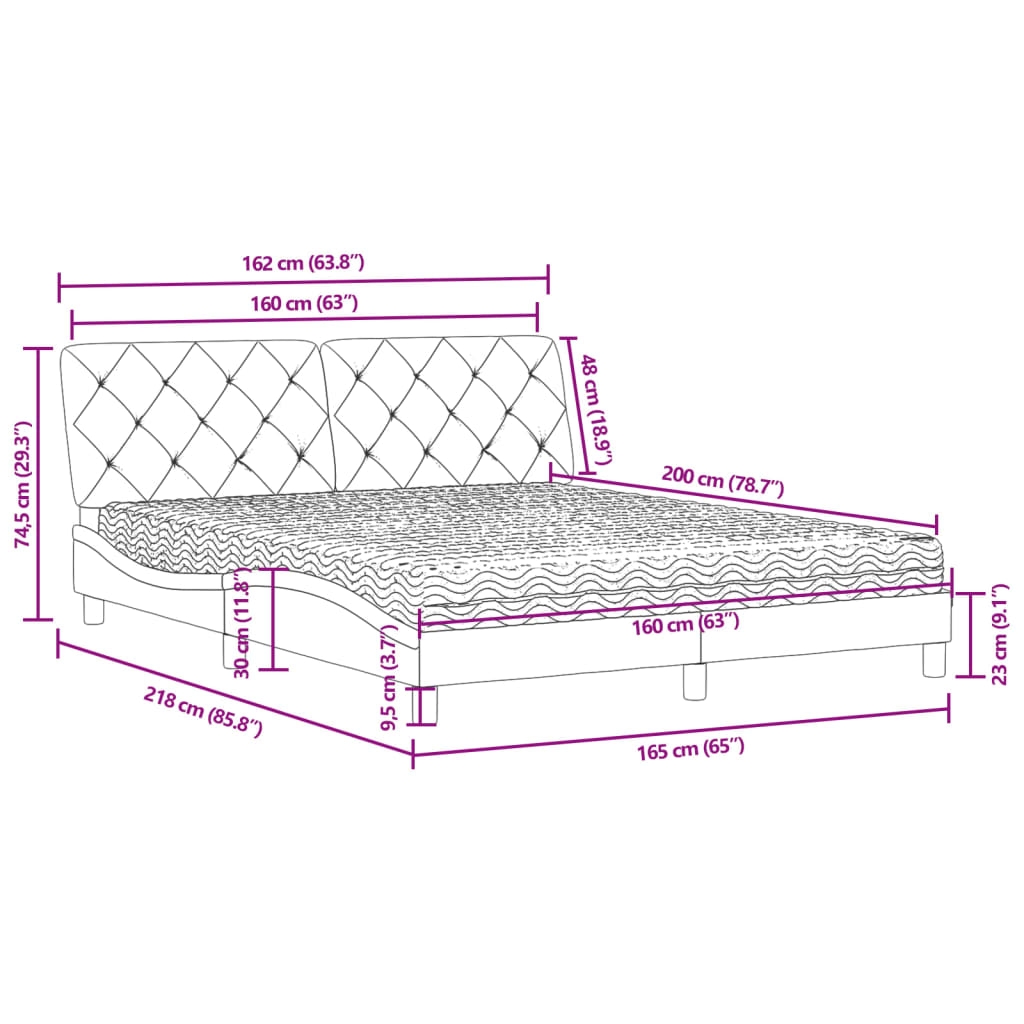 In diesem Bett mit Matratze genießt du einen besseren, erholsameren Schlaf! Es ist eine einladende Ergänzung zu jedem Schlafzimmer. Weicher Samt: Samt ist ein weicher und bequemer Stoff, der sich angenehm auf der Haut anfühlt.Sperrholzlatten: Die Sperrholzlatten sorgen für eine gute Gewichtsverteilung und auch dafür, dass die Matratze bei jeder Bewegung deines Körpers während des Schlafes an Ort und Stelle bleibt.Hervorragende Unterstützung: Das Bett-Kopfteil bietet dir eine hervorragende Unterstützung, während du im Bett sitzt, um zu lesen oder fernzusehen.Schaumstoffmatratze: Die Bettmatratze besteht aus 3 Schichten und ist mit 22D PU-Schaumstoff gefüllt, um optimalen Komfort zu bieten. Sie lindert Müdigkeit und fördert die Blutzirkulation, um für vollständige Entspannung und einen guten Schlaf nach einem langen Tag zu sorgen. Zudem besitzt die Matratze die Härtegrade H2 und H3, sodass du durch einfaches Wenden der Matratze den Härtegrad wählen kannst, der deinen Anforderungen bestens entspricht.Wellenförmiges Seitendesign: Das stilvolle und raffinierte Design in Wellenform verleiht deiner Einrichtung eine moderne und elegante Note und macht das Bettgestell zum Mittelpunkt deines Schlafzimmers.