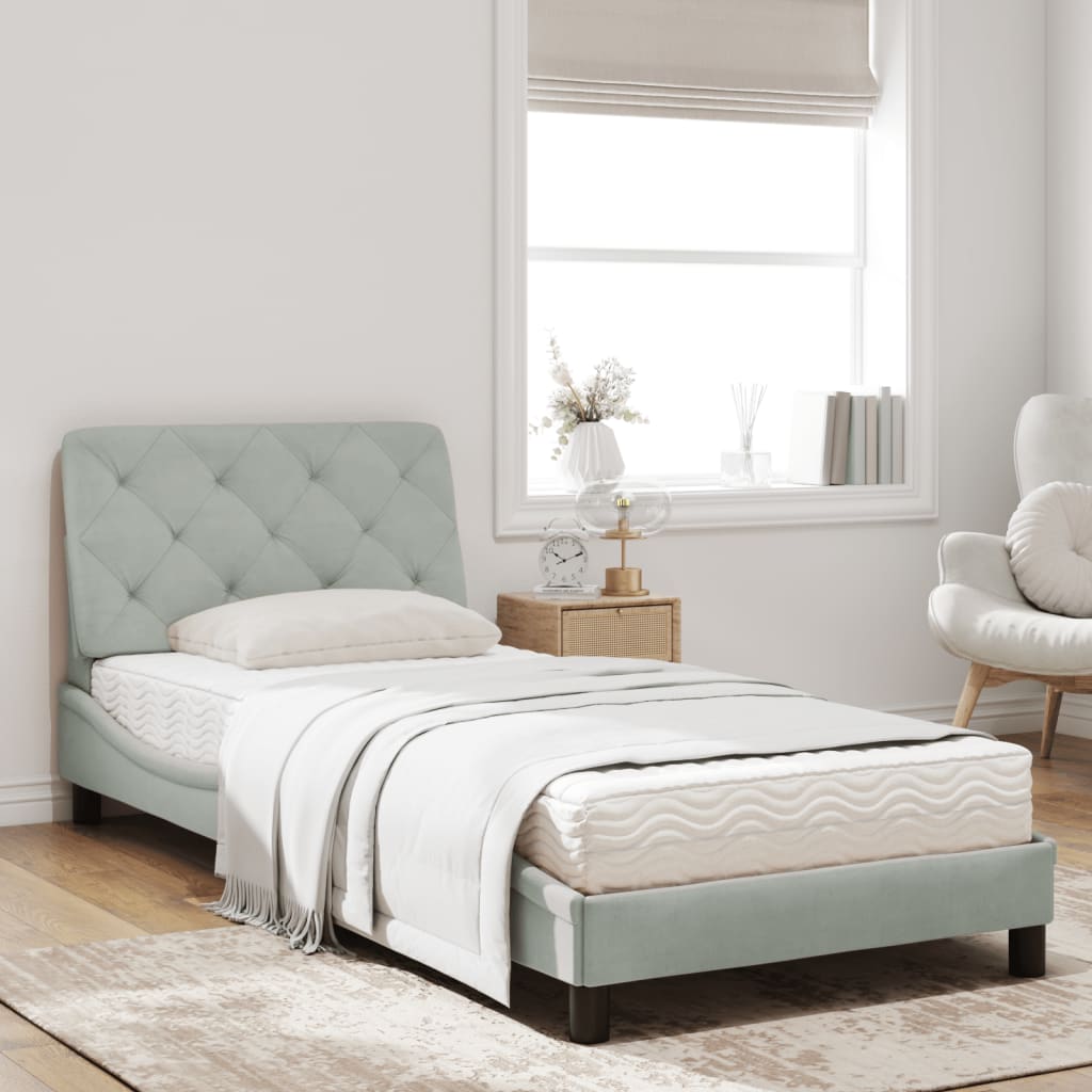 In diesem Bett mit Matratze genießt du einen besseren, erholsameren Schlaf! Es ist eine einladende Ergänzung zu jedem Schlafzimmer. Weicher Samt: Samt ist ein weicher und bequemer Stoff, der sich angenehm auf der Haut anfühlt.Sperrholzlatten: Die Sperrholzlatten sorgen für eine gute Gewichtsverteilung und auch dafür, dass die Matratze bei jeder Bewegung deines Körpers während des Schlafes an Ort und Stelle bleibt.Hervorragende Unterstützung: Das Bett-Kopfteil bietet dir eine hervorragende Unterstützung, während du im Bett sitzt, um zu lesen oder fernzusehen.Schaumstoffmatratze: Die Bettmatratze besteht aus 3 Schichten und ist mit 22D PU-Schaumstoff gefüllt, um optimalen Komfort zu bieten. Sie lindert Müdigkeit und fördert die Blutzirkulation, um für vollständige Entspannung und einen guten Schlaf nach einem langen Tag zu sorgen. Zudem besitzt die Matratze die Härtegrade H2 und H3, sodass du durch einfaches Wenden der Matratze den Härtegrad wählen kannst, der deinen Anforderungen bestens entspricht.Wellenförmiges Seitendesign: Das stilvolle und raffinierte Design in Wellenform verleiht deiner Einrichtung eine moderne und elegante Note und macht das Bettgestell zum Mittelpunkt deines Schlafzimmers.