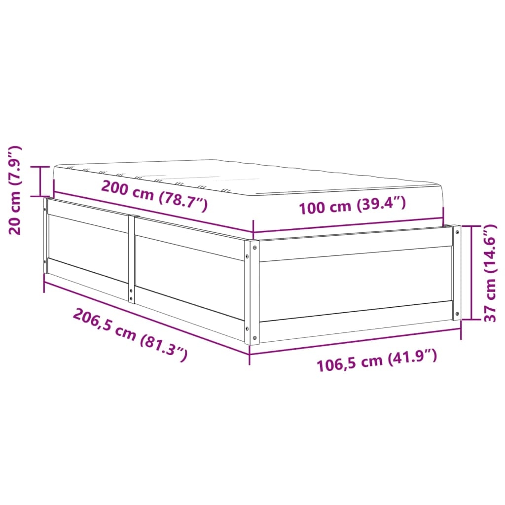 - Abmessungen: 206,5 x 106,5 x 37 cm (L x B x H)