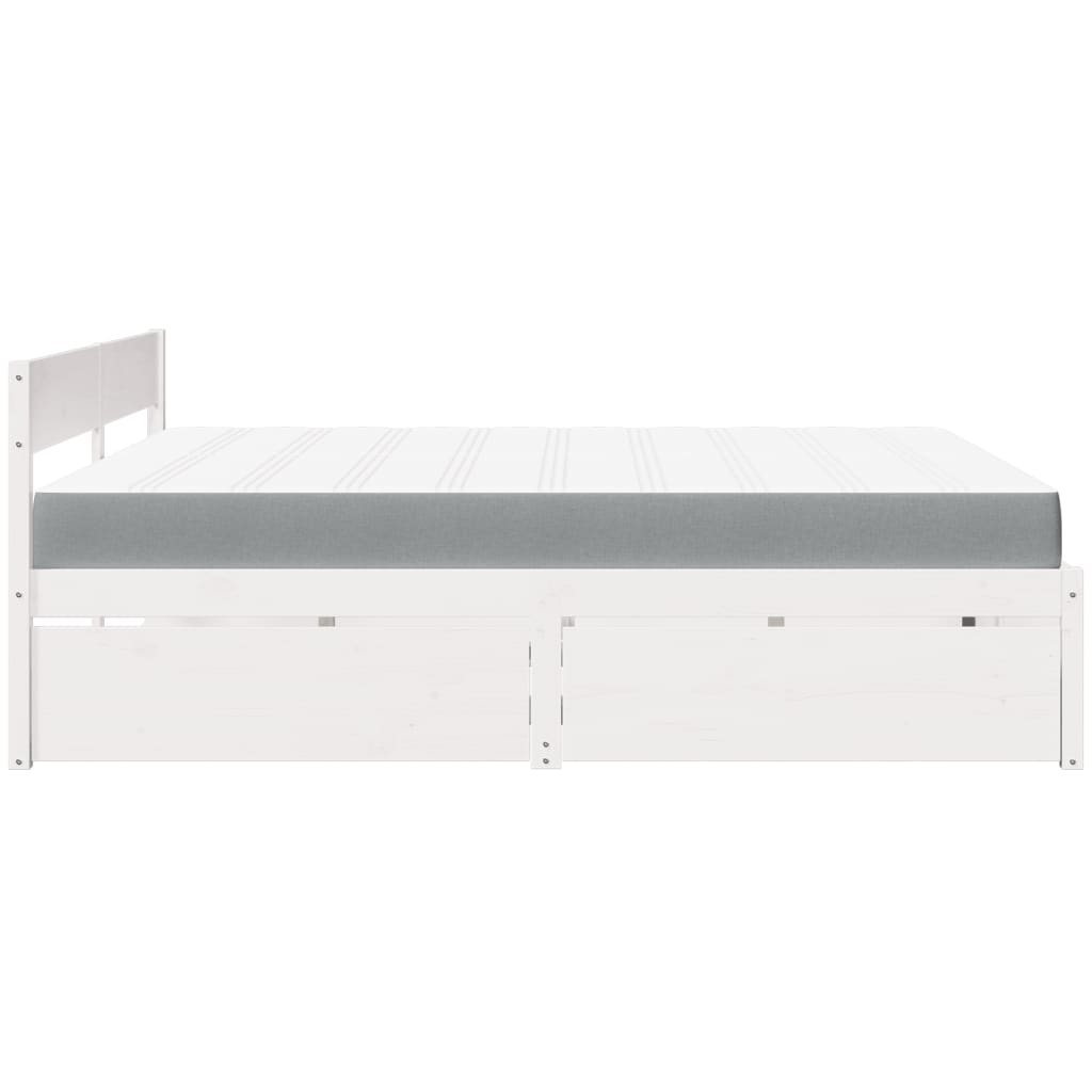 Mit seinem schlichten, aber zeitlosen Design ist dieses Bett eine wirklich praktische und dekorative Ergänzung für dein Schlafzimmer. Massives Kiefernholz: Massives Kiefernholz ist ein wunderschönes Naturmaterial. Kiefernholz weist eine gerade Maserung auf und die Aststellen verleihen dem Material seine charakteristische, rustikale Optik.Strapazierfähiger Stoff: Der Stoff weist eine schlichte und saubere Optik auf und ist außerdem atmungsaktiv und langlebig.Taschenfederkernmatratze: Diese Matratze hat einzelne Taschenfedern, die unabhängig voneinander arbeiten. Somit bietet sie dir optimalen Halt, indem sie auf Druckstellen in jedem Bereich unabhängig reagieren. Diese Konstruktion verhindert das "Zusammenrollen" und reduziert die Bewegungsübertragung im Vergleich zu alten Federkernmatratzen. Jede Taschenfeder stützt die Körper-Druckstellen individuell.Stauraum: Die mitgelieferten Bettschubladen bietet reichlich Stauraum zur Aufbewahrung wichtiger Sachen, um für Ordnung in Ihrem Zimmer zu sorgen.Latten für optimale Unterstützung: Das Bettgestell ist mit Latten ausgestattet, die deine Matratze optimal stützen und auch für Atmungsaktivität sorgen. Gut zu wissen:Aus hygienischen Gründen kann die Matratze nicht zurückgegeben werden, wenn die Verpackung entfernt oder geöffnet wurde.