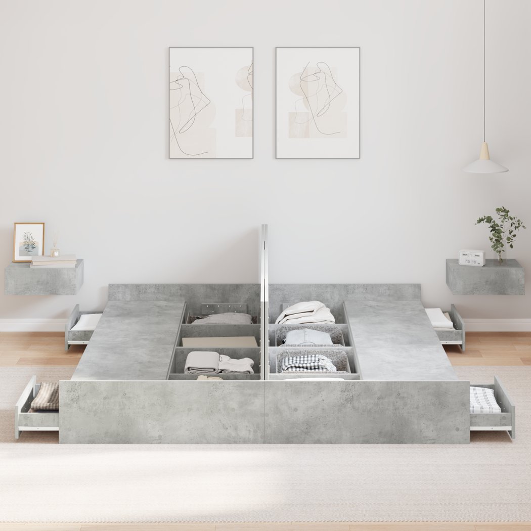 Dieses stylishe Stauraumbett ist genau das, was du für ein modernes Schlafzimmer brauchst. Es bietet sowohl praktischen Nutzen als auch tollen Stil. Der Rahmen hat ein schlichtes und sauberes Design, das perfekt zu verschiedenen Einrichtungsstilen passt. Der integrierte Stauraum ist einfach genial, um alles organisiert zu halten – perfekt für alle, die Einfachheit und Bequemlichkeit schätzen. Vielseitiges Design: Dieses rechteckige Bettgestell verbindet schickes Design mit praktischem Stauraum. Die klaren Linien und die saubere Eleganz passen super in moderne Umgebungen. Der Holzwerkstoff sorgt für einen coolen Look, der zu jedem Schlafzimmerstil passt. Integrierter Stauraum: Mit vielen Schubladen unter der Matratze ist dieses Bettgestell perfekt, um den Stauraum im Schlafzimmer clever auszunutzen. Diese Schubladen sind ideal, um Kleidung, Bettwäsche und andere wichtige Sachen zu verstauen, sodass der Platz effizient genutzt wird, ohne dass der Stil leidet. Robuste Konstruktion: Aus solidem Holzwerkstoff gefertigt ist dieses Stauraumbett stabil und langlebig. Es bietet dir eine große Stabilität für einen angenehmen Schlaf. Das Kopf- und Fußteil sorgt zusätzlich für Halt. Praktische Funktionen: Du brauchst keinen Boxspring, was die Nutzung super einfach macht. Es hat starke Latten für einen stabilen Matratzenhalt und die hochklappbare Basis verbirgt Stauraum, was die Flexibilität erhöht. Einfache Pflege: Dieses Stauraumbett zu reinigen ist ein Kinderspiel – einfach schnell mit einem feuchten Tuch abwischen. Es ist pflegeleicht und damit die beste Wahl für einen vollen Alltag, da es Bequemlichkeit und Langlebigkeit kombiniert.