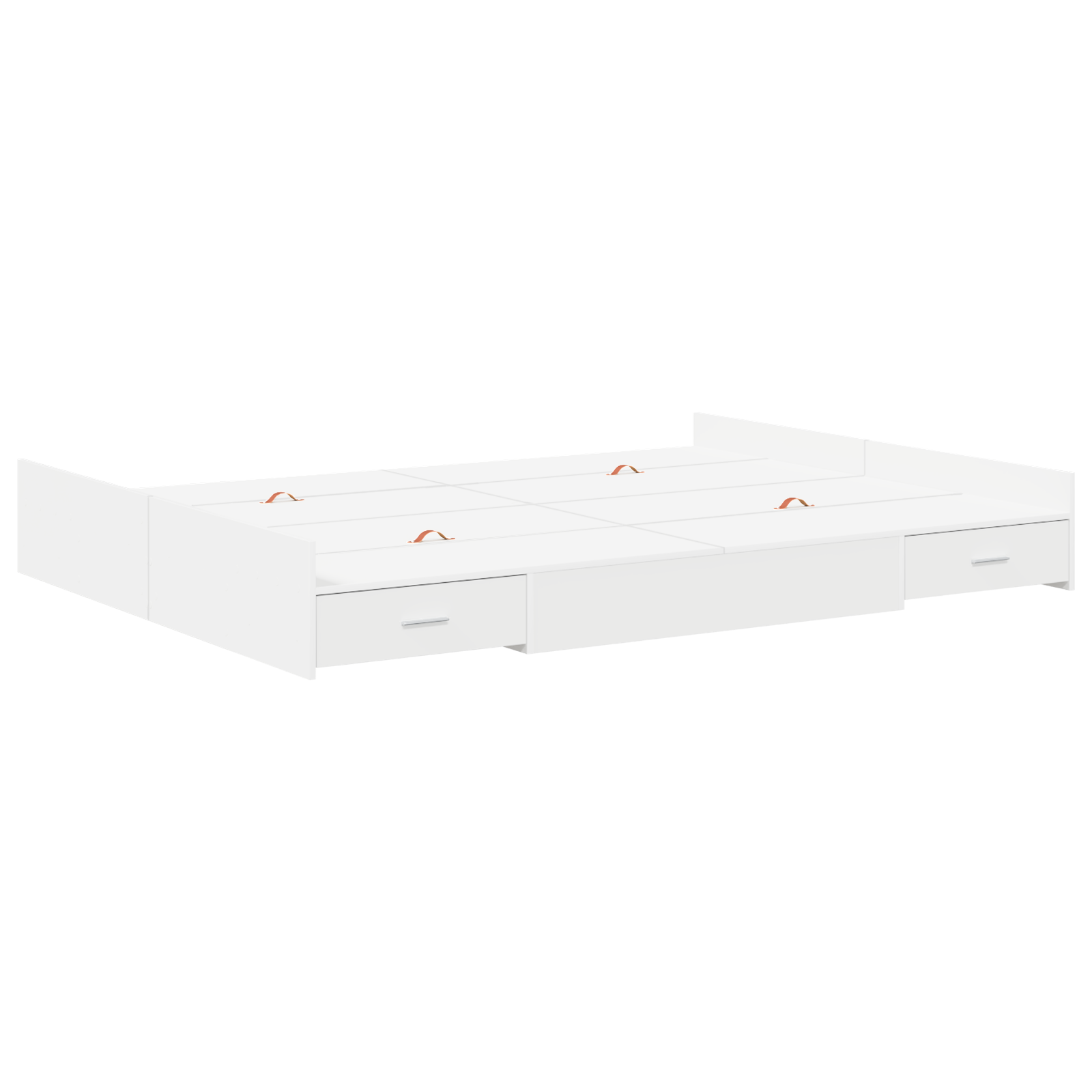 Dieses stylishe Stauraumbett ist genau das, was du für ein modernes Schlafzimmer brauchst. Es bietet sowohl praktischen Nutzen als auch tollen Stil. Der Rahmen hat ein schlichtes und sauberes Design, das perfekt zu verschiedenen Einrichtungsstilen passt. Der integrierte Stauraum ist einfach genial, um alles organisiert zu halten – perfekt für alle, die Einfachheit und Bequemlichkeit schätzen. Vielseitiges Design: Dieses rechteckige Bettgestell verbindet schickes Design mit praktischem Stauraum. Die klaren Linien und die saubere Eleganz passen super in moderne Umgebungen. Der Holzwerkstoff sorgt für einen coolen Look, der zu jedem Schlafzimmerstil passt. Integrierter Stauraum: Mit vielen Schubladen unter der Matratze ist dieses Bettgestell perfekt, um den Stauraum im Schlafzimmer clever auszunutzen. Diese Schubladen sind ideal, um Kleidung, Bettwäsche und andere wichtige Sachen zu verstauen, sodass der Platz effizient genutzt wird, ohne dass der Stil leidet. Robuste Konstruktion: Aus solidem Holzwerkstoff gefertigt ist dieses Stauraumbett stabil und langlebig. Es bietet dir eine große Stabilität für einen angenehmen Schlaf. Das Kopf- und Fußteil sorgt zusätzlich für Halt. Praktische Funktionen: Du brauchst keinen Boxspring, was die Nutzung super einfach macht. Es hat starke Latten für einen stabilen Matratzenhalt und die hochklappbare Basis verbirgt Stauraum, was die Flexibilität erhöht. Einfache Pflege: Dieses Stauraumbett zu reinigen ist ein Kinderspiel – einfach schnell mit einem feuchten Tuch abwischen. Es ist pflegeleicht und damit die beste Wahl für einen vollen Alltag, da es Bequemlichkeit und Langlebigkeit kombiniert.