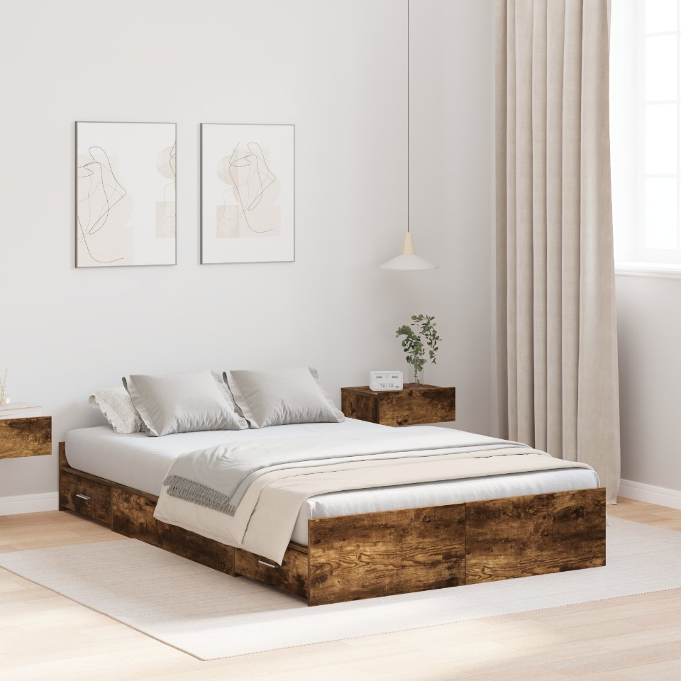 Dieses stylishe Stauraumbett ist genau das, was du für ein modernes Schlafzimmer brauchst. Es bietet sowohl praktischen Nutzen als auch tollen Stil. Der Rahmen hat ein schlichtes und sauberes Design, das perfekt zu verschiedenen Einrichtungsstilen passt. Der integrierte Stauraum ist einfach genial, um alles organisiert zu halten – perfekt für alle, die Einfachheit und Bequemlichkeit schätzen. Vielseitiges Design: Dieses rechteckige Bettgestell verbindet schickes Design mit praktischem Stauraum. Die klaren Linien und die saubere Eleganz passen super in moderne Umgebungen. Der Holzwerkstoff sorgt für einen coolen Look, der zu jedem Schlafzimmerstil passt. Integrierter Stauraum: Mit vielen Schubladen unter der Matratze ist dieses Bettgestell perfekt, um den Stauraum im Schlafzimmer clever auszunutzen. Diese Schubladen sind ideal, um Kleidung, Bettwäsche und andere wichtige Sachen zu verstauen, sodass der Platz effizient genutzt wird, ohne dass der Stil leidet. Robuste Konstruktion: Aus solidem Holzwerkstoff gefertigt ist dieses Stauraumbett stabil und langlebig. Es bietet dir eine große Stabilität für einen angenehmen Schlaf. Das Kopf- und Fußteil sorgt zusätzlich für Halt. Praktische Funktionen: Du brauchst keinen Boxspring, was die Nutzung super einfach macht. Es hat starke Latten für einen stabilen Matratzenhalt und die hochklappbare Basis verbirgt Stauraum, was die Flexibilität erhöht. Einfache Pflege: Dieses Stauraumbett zu reinigen ist ein Kinderspiel – einfach schnell mit einem feuchten Tuch abwischen. Es ist pflegeleicht und damit die beste Wahl für einen vollen Alltag, da es Bequemlichkeit und Langlebigkeit kombiniert.
